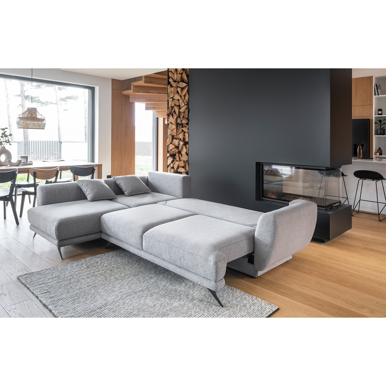 Colțarul extensibil Larde de la Eltap este o piesă de mobilier elegantă și confortabilă, proiectată pentru a se adapta nevoilor tale. Cu o structură din lemn de pin și tapițerie din poliester 100%, acest colțar oferă un suport excelent datorită spumei HR folosite la umplutură. Dimensiunile sale generoase de 286x191x90 cm includ un loc de dormit extensibil de 140x241 cm, perfect pentru oaspeți. Cu patru perne de spătar și două perne decorative, colțarul asigură confortul maxim. Picioarele din oțel negru adaugă un aer modern, iar mecanismul de extindere DL simplifică transformarea în pat. Este alegerea ideală pentru relaxare zi și noapte.