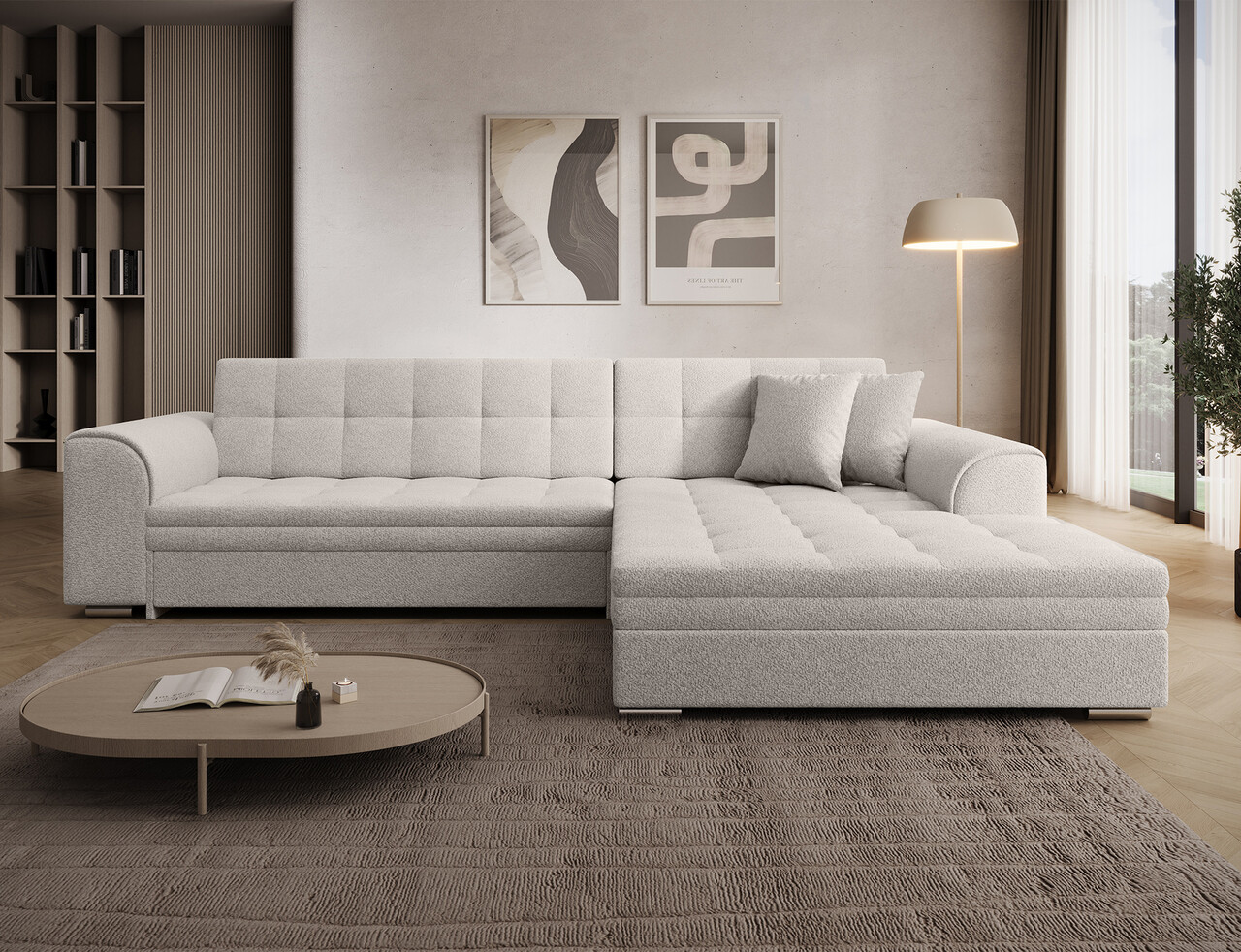 Coltar extensibil dreapta 4 locuri ELTAP Sorento 296x194x78 cm lemn/poliester alb murdar