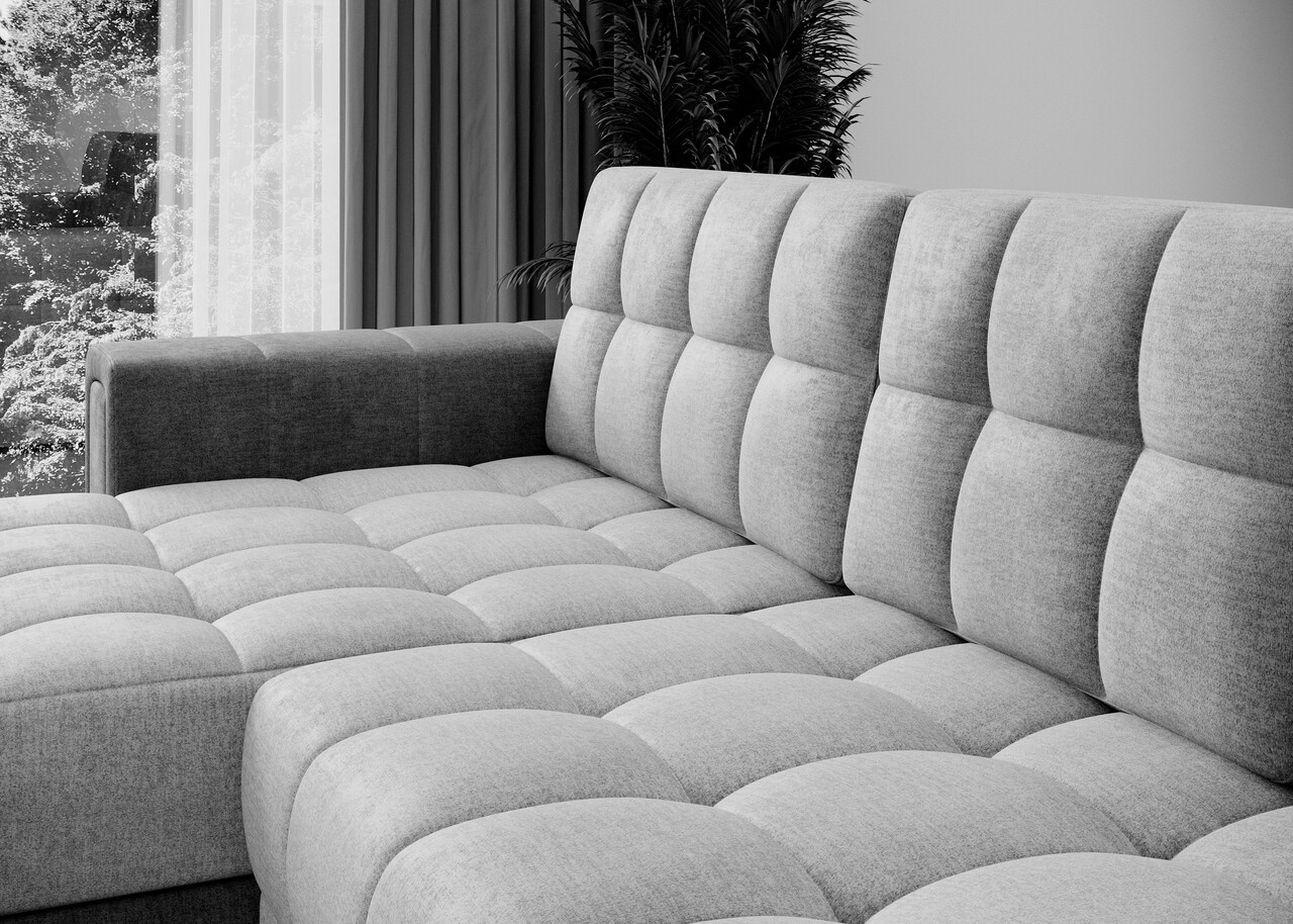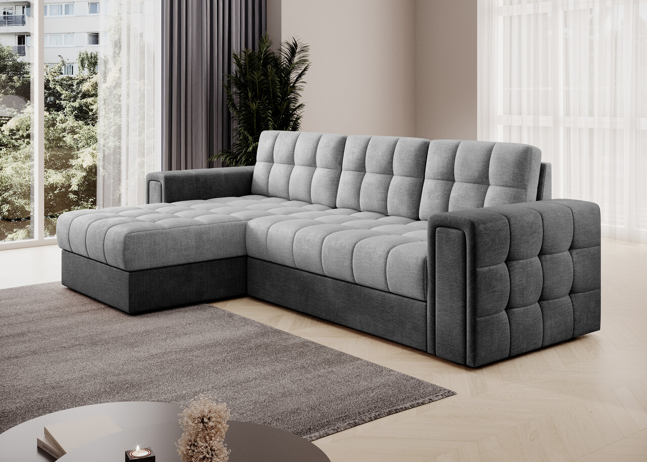 Coltarul extensibil reversibil ELTAP Blenvi 260x150x82 cm este o alegere modernă și practică pentru orice sufragerie. Cu un sezut confortabil dotat cu arcuri ondulate de tip B și spumă poliuretanică T2540, oferă un suport excelent. Funcția de dormit tip delfin permite transformarea rapidă într-un pat generos, ideal pentru oaspeți. Compartimentul de depozitare pentru lenjerie adaugă funcționalitate, iar spatarul complet tapitat permite amplasarea liberă în cameră. Designul său elegant se integrează perfect în diverse stiluri de interior, fiind disponibil într-o combinație de culori gri și gri închis.
