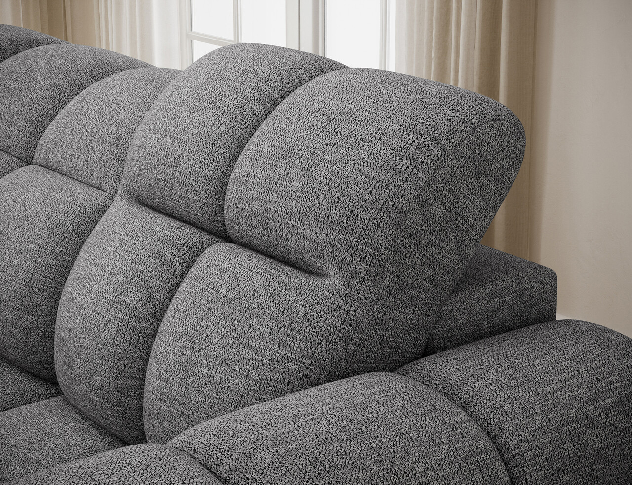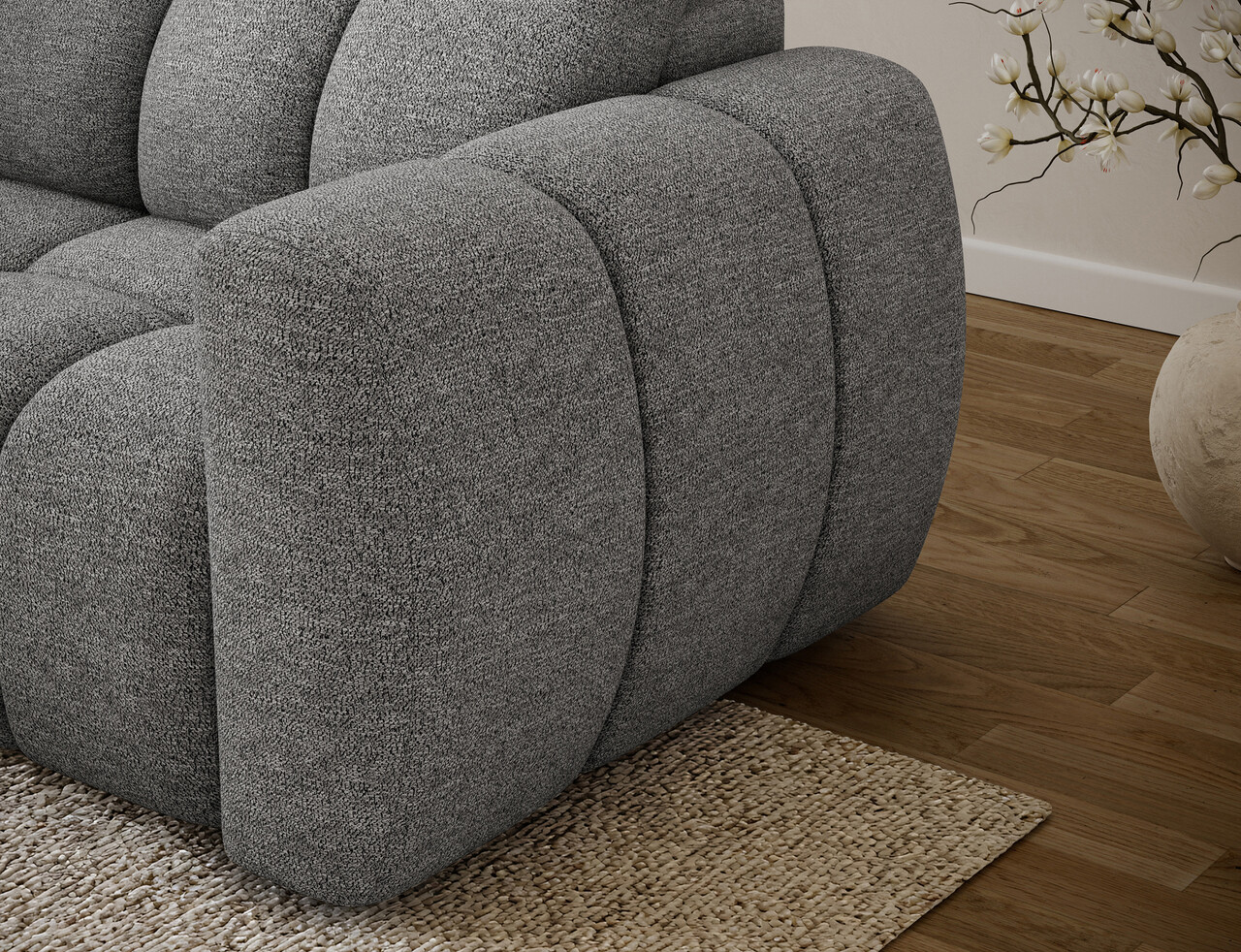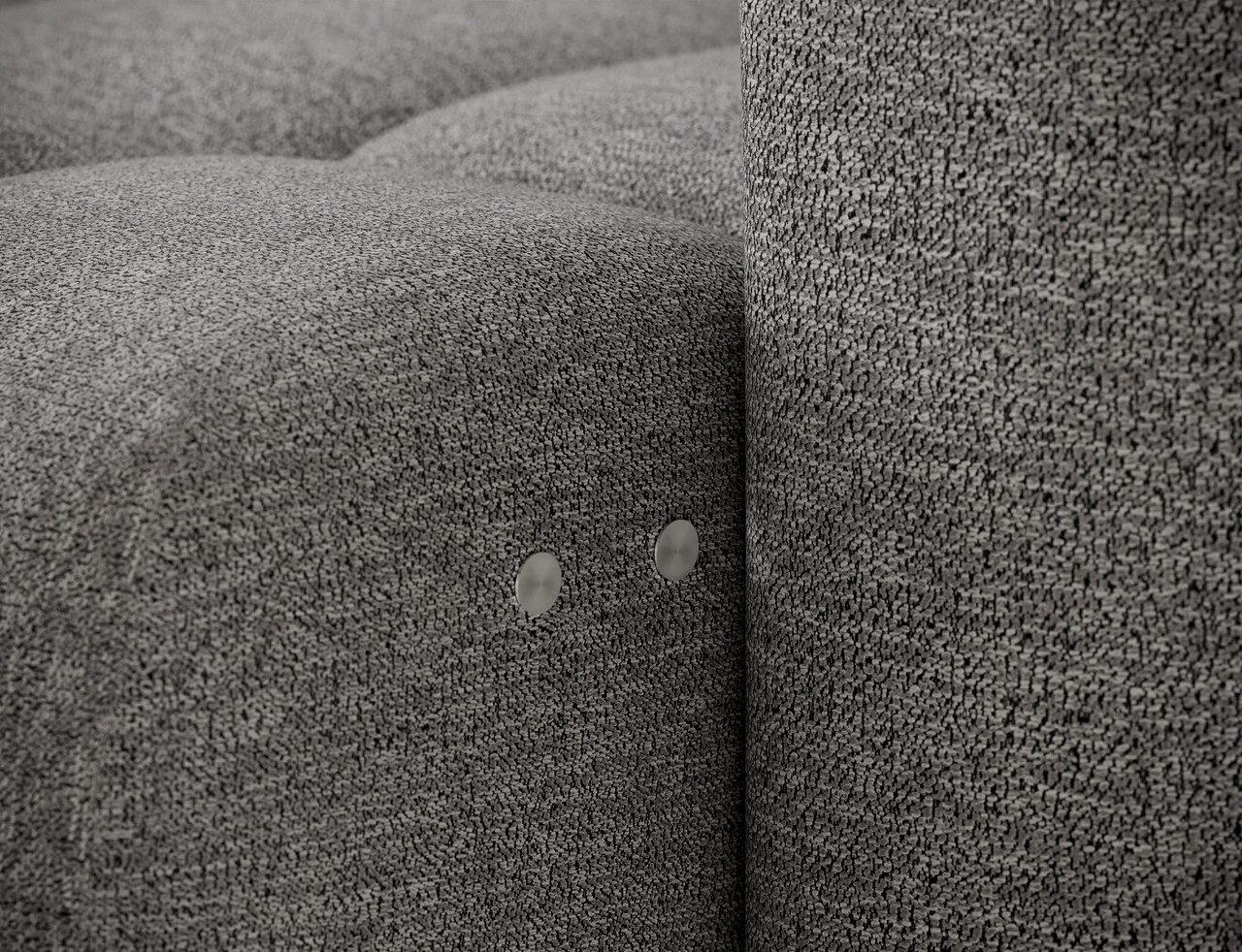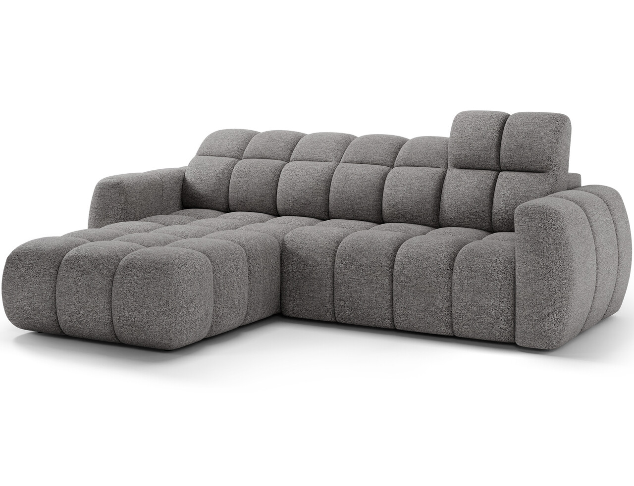 Coltarul extensibil stânga 3 locuri ELTAP Fanito 288x200x105 cm, din lemn și poliester gri închis, aduce un plus de eleganță și confort în orice living. Cu o siluetă masivă și rotunjită, acesta oferă un sezut adânc și o capitonare segmentată, ideală pentru relaxare. Umplutura din arcuri ondulate tip B, spumă HR3030 și vatelină matlasată asigură elasticitate și rezistență. Pe lângă funcția de dormit, extensia electrică de 28 cm permite o transformare rapidă a spațiului. Spatarul ergonomic și tetierele reglabile completează experiența de confort. Dimensiunile generoase oferă loc pentru toată familia, iar picioarele din plastic negru adaugă un strop de modernitate.