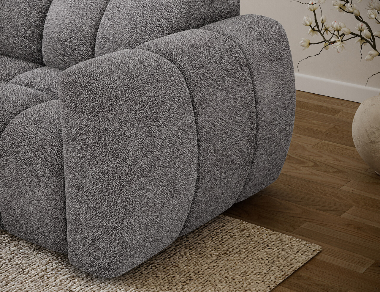 Coltar extensibil stanga 3 locuri ELTAP Fanito 288x200x105 cm lemn/poliester gri