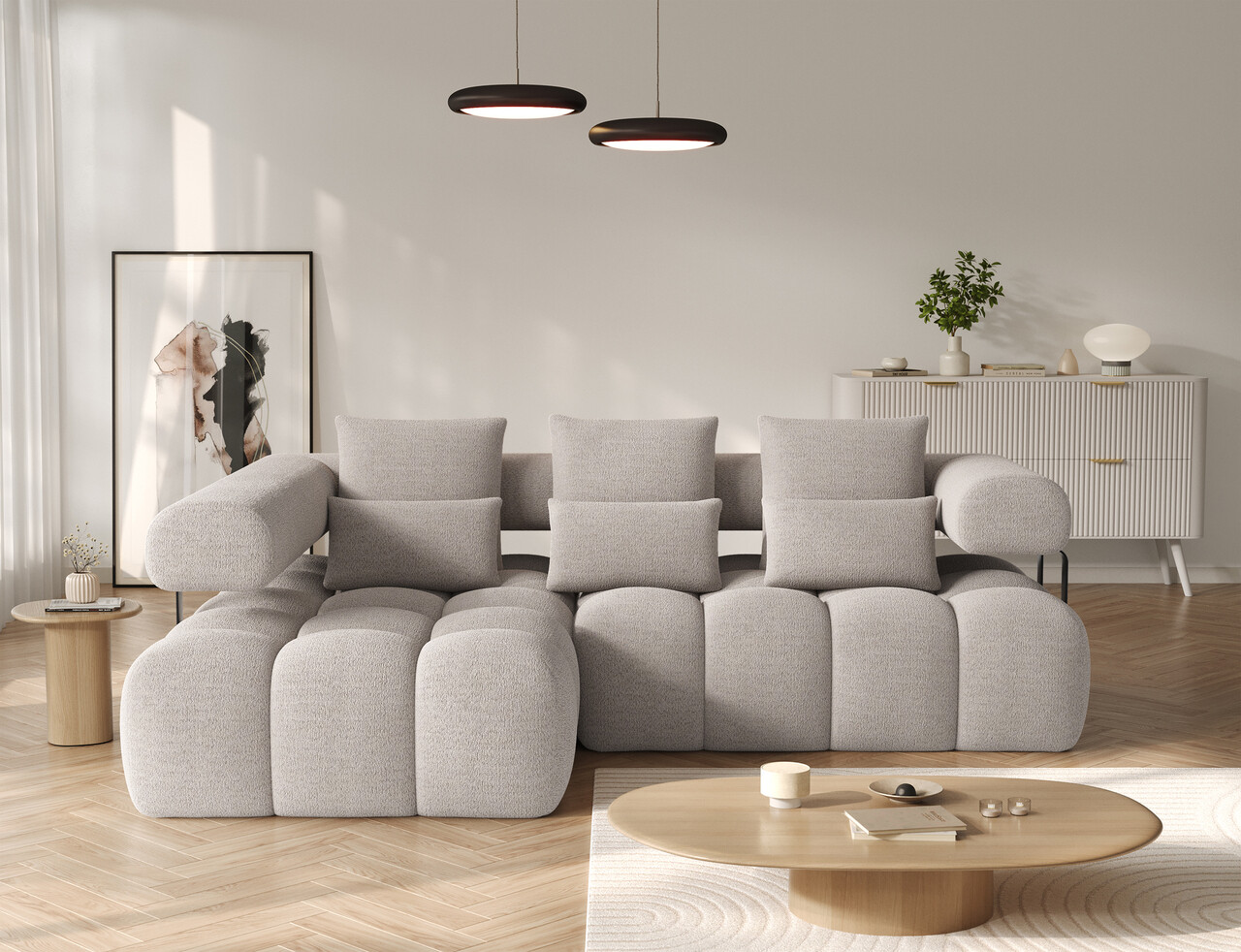 Coltar extensibil stanga 3 locuri ELTAP Levvi 260x184x102 cm lemn/poliester bej inchis