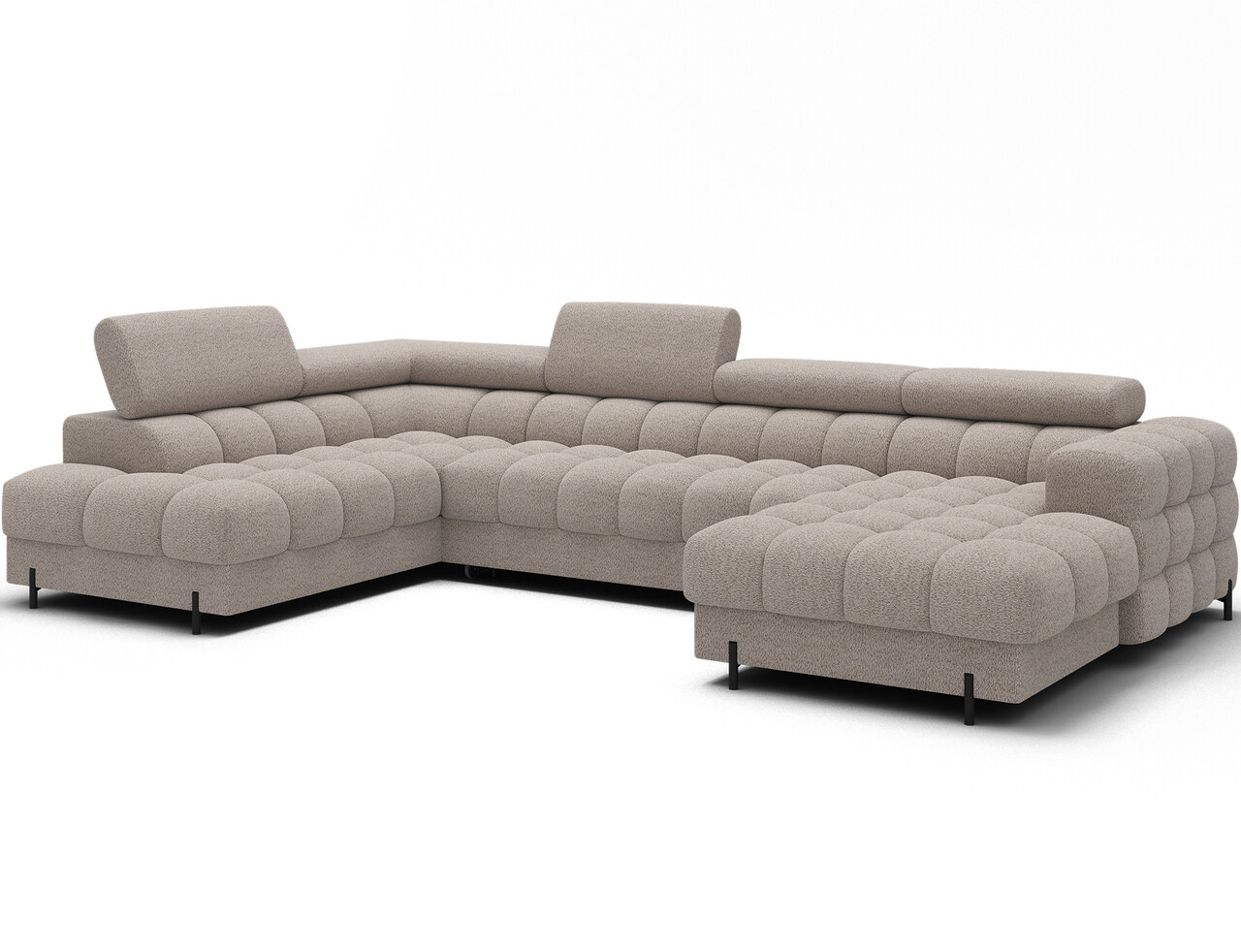 Coltarul extensibil stânga 3 locuri ELTAP LT-18ROY Feraria combină eleganța cu funcționalitatea, având dimensiuni de 358x202x93 cm. Tapitat cu poliester bej deschis, oferă un confort deosebit datorită arcurilor ondulate și a spumei de calitate. Transformarea rapidă într-un pat confortabil și lada de depozitare generoasă pentru lenjerie adaugă un plus de utilitate. Spatele tapitat permite amplasarea liberă în cameră, iar picioarele din metal negru subliniază stilul modern. Cu o greutate maximă suportată de 450 kg, acest coltar este ideal pentru cei care apreciază designul rafinat și practic.