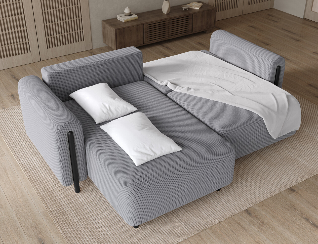 Coltarul extensibil stânga Acossta de la Eltap este soluția perfectă pentru confortul zilnic. Cu dimensiuni de 244x154x95 cm, acest coltar modern îmbină designul elegant cu funcționalitatea. Sezutul, realizat din arcuri sinusoidale tip B și spumă HR3030, oferă un confort optim, iar spatarul din spumă poliuretanică T2315 asigură un suport stabil. Funcția de dormit și mecanismul tip DL facilitează extinderea rapidă, iar lada de depozitare adaugă funcționalitate. Cadrul din lemn de pin și picioarele negre completează aspectul modern al coltarului, care suportă o greutate de până la 270 kg.