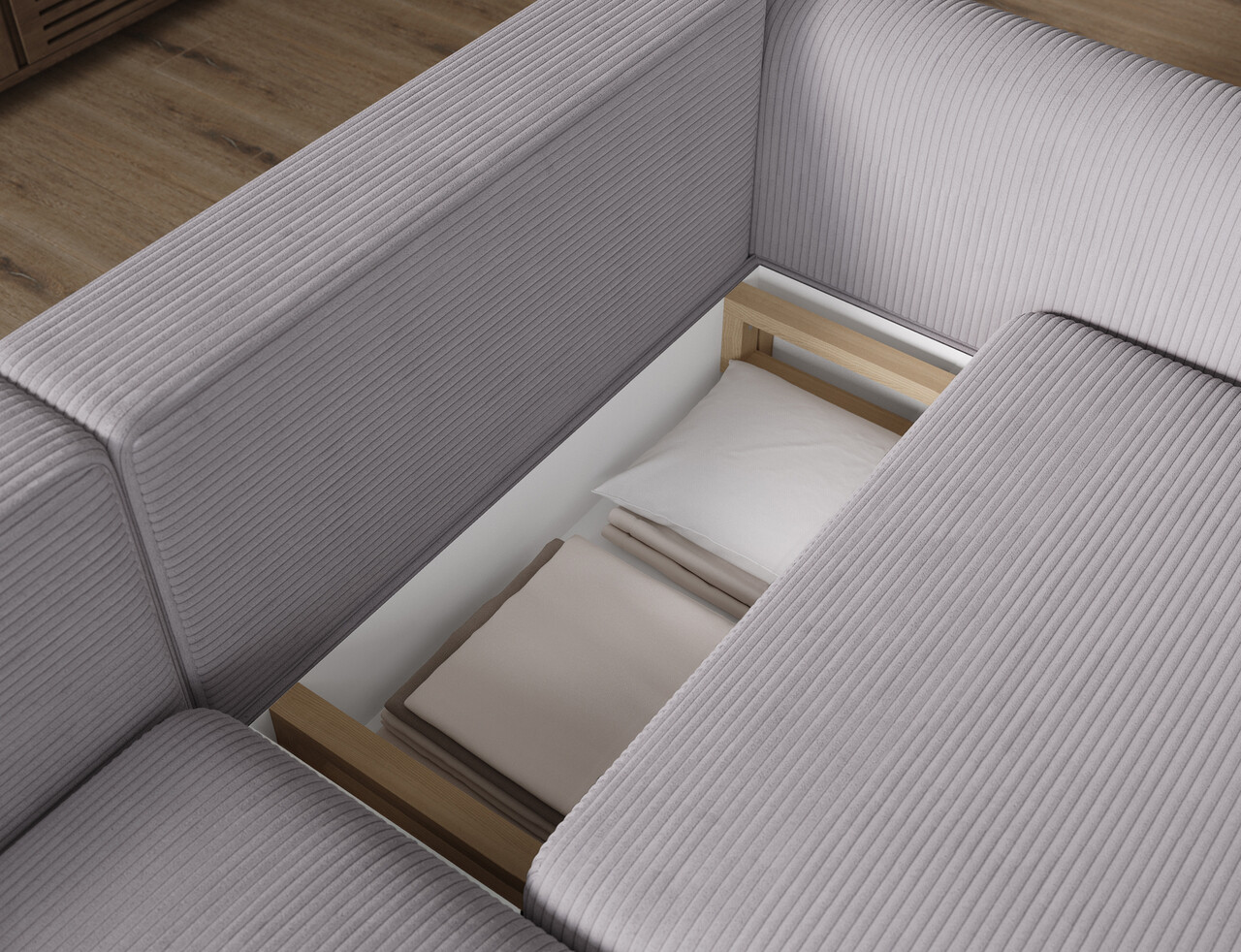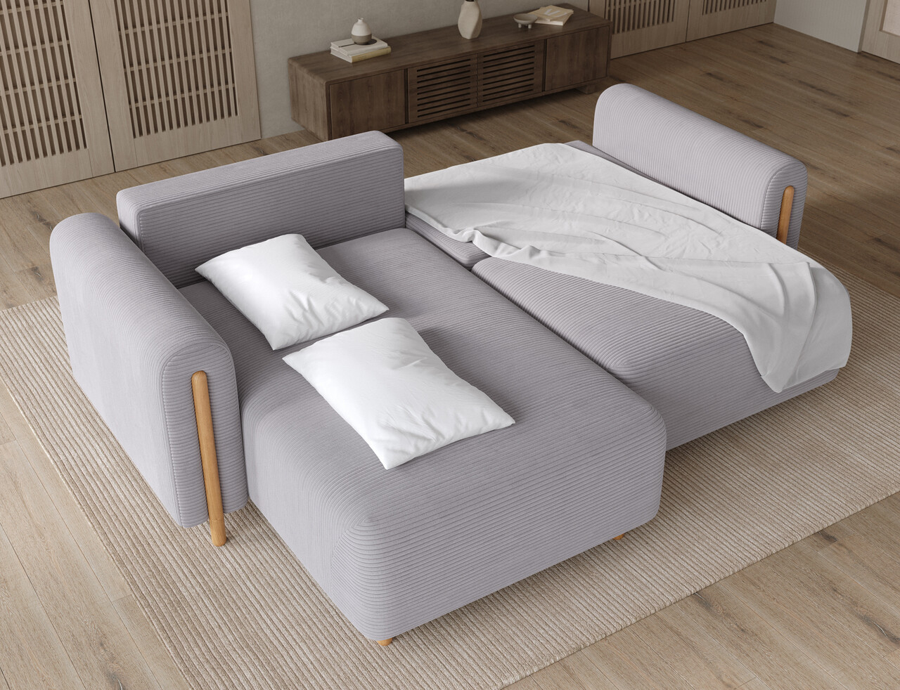 Coltar extensibil stanga 3 locuri ELTAP LT-O-03JAR Acossta 244x154x95 cm lemn/poliester gri/natur