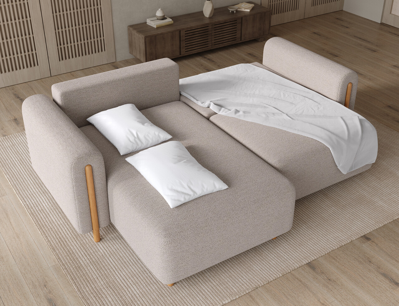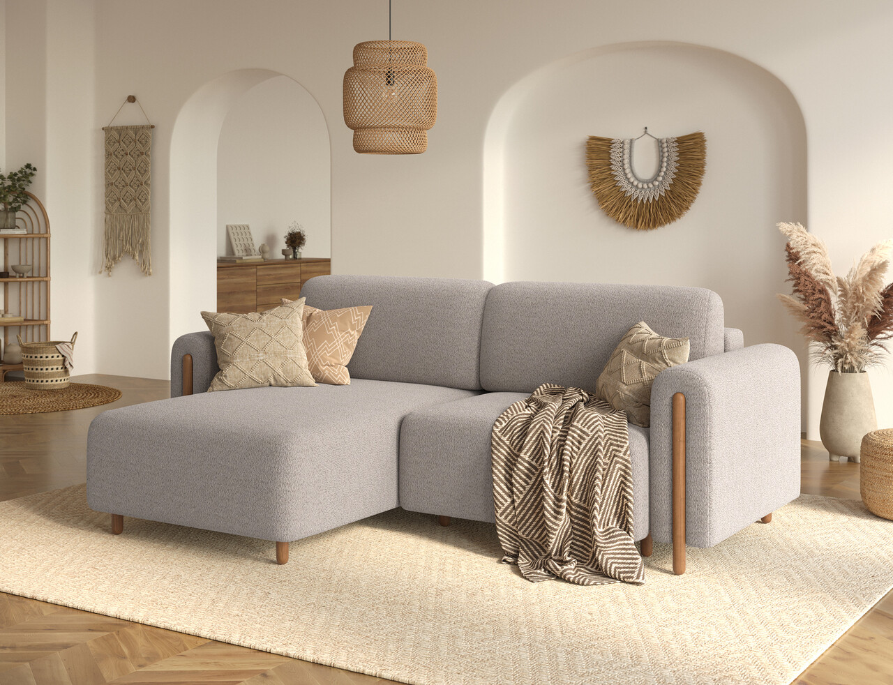Coltar extensibil stanga 3 locuri ELTAP LT-O-18ROY Acossta 244x154x95 cm lemn/poliester bej/natur