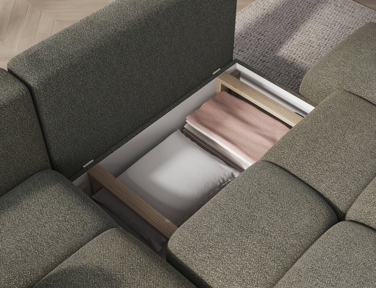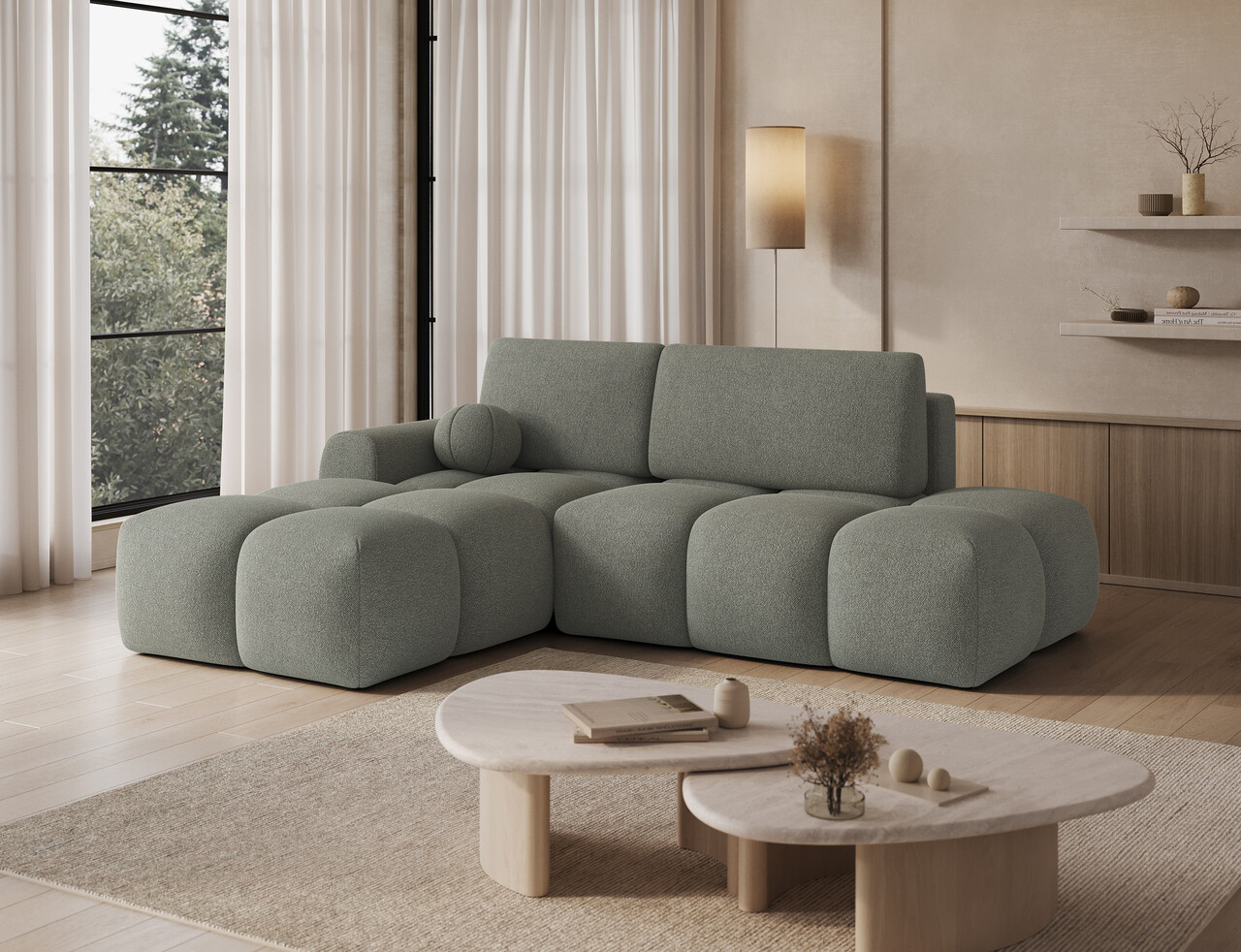 Coltarul extensibil stânga 3 locuri ELTAP Vittario, cu dimensiuni de 227x170x95 cm, este o alegere modernă și practică pentru orice living. Tapiteria din 100% poliester verde olive, combinată cu un cadru din lemn de pin, asigură durabilitate și un aspect elegant. Sezutul, dotat cu arc ondulat de tip B și spumă HR3030, oferă confort sporit, iar spătarul cu perne umplute cu granule de spumă se adaptează perfect corpului. Cu mecanism de extindere DL pentru o transformare rapidă în pat și ladă de depozitare integrată, coltarul Vittario îmbină funcționalitatea cu estetică, ideal pentru spațiile moderne.