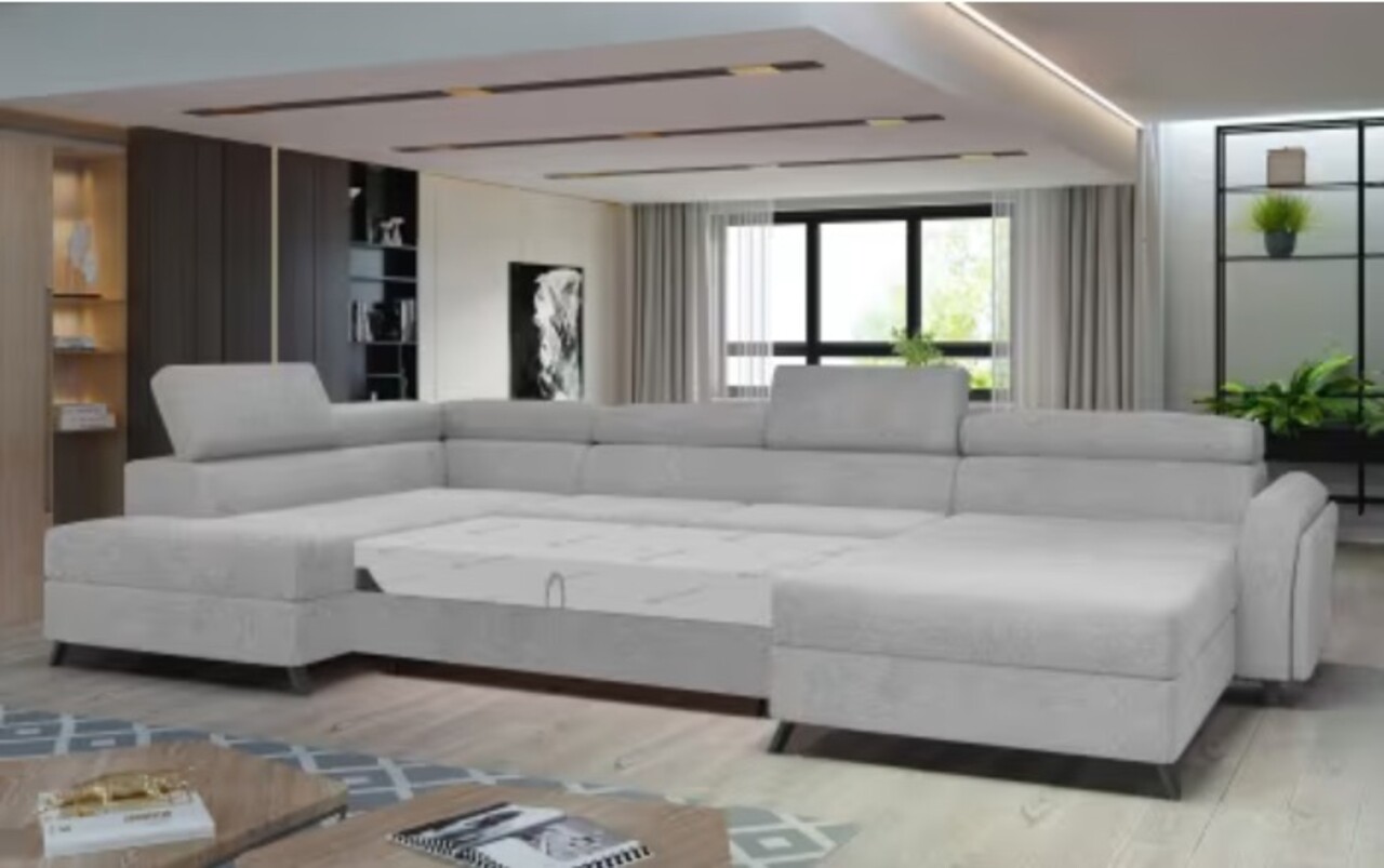 Coltarul extensibil stânga 5 locuri ELTAP Josette este o piesă de mobilier multifunctional, elegantă și confortabilă, ideală pentru un living generos. Cu dimensiuni de 370x190x98 cm, acest coltar în formă de U oferă un sezut lat de 55 cm, umplut cu spumă T30 + HR și arc ondulat, asigurând un confort excepțional. Mecanismul de extindere tip delfin transformă coltarul într-un pat de 110x300 cm, perfect pentru nopțile de somn odihnitor. Dotat cu tetiere reglabile și picioare din metal și lemn, Josette combină funcționalitatea cu un design modern.