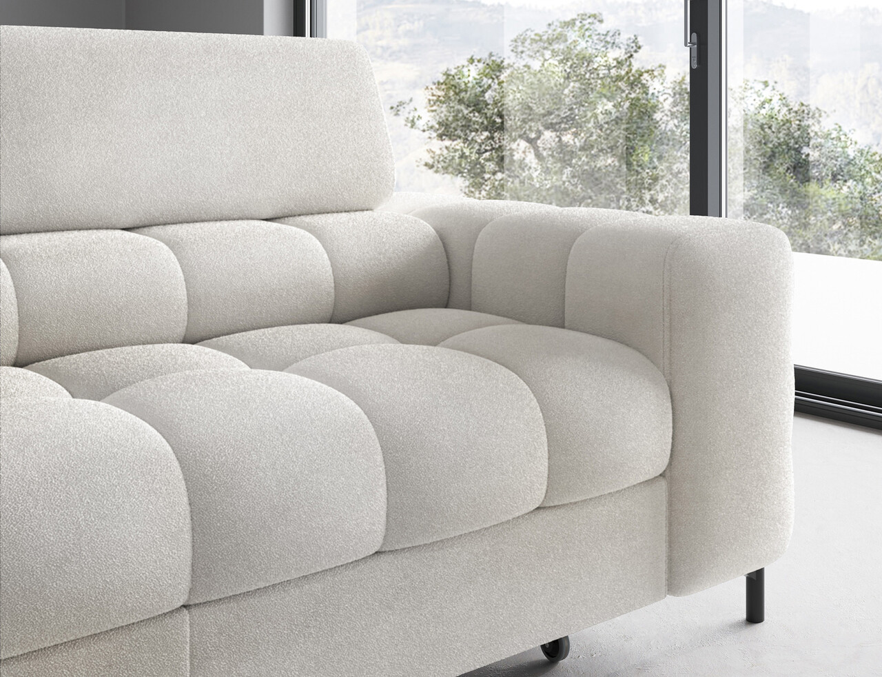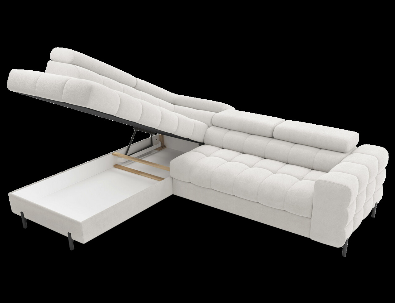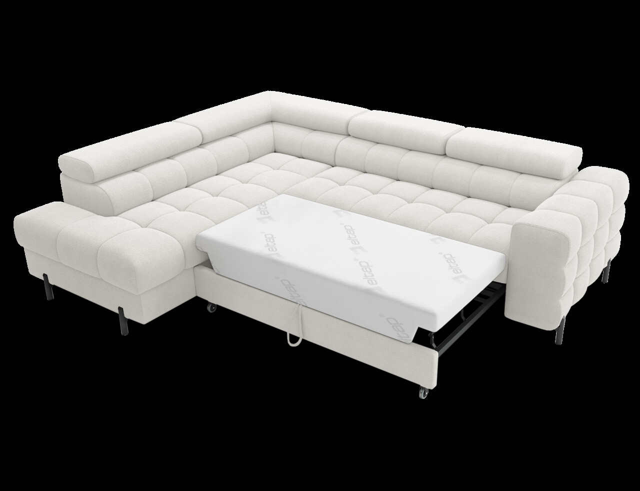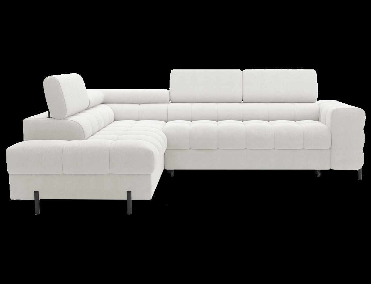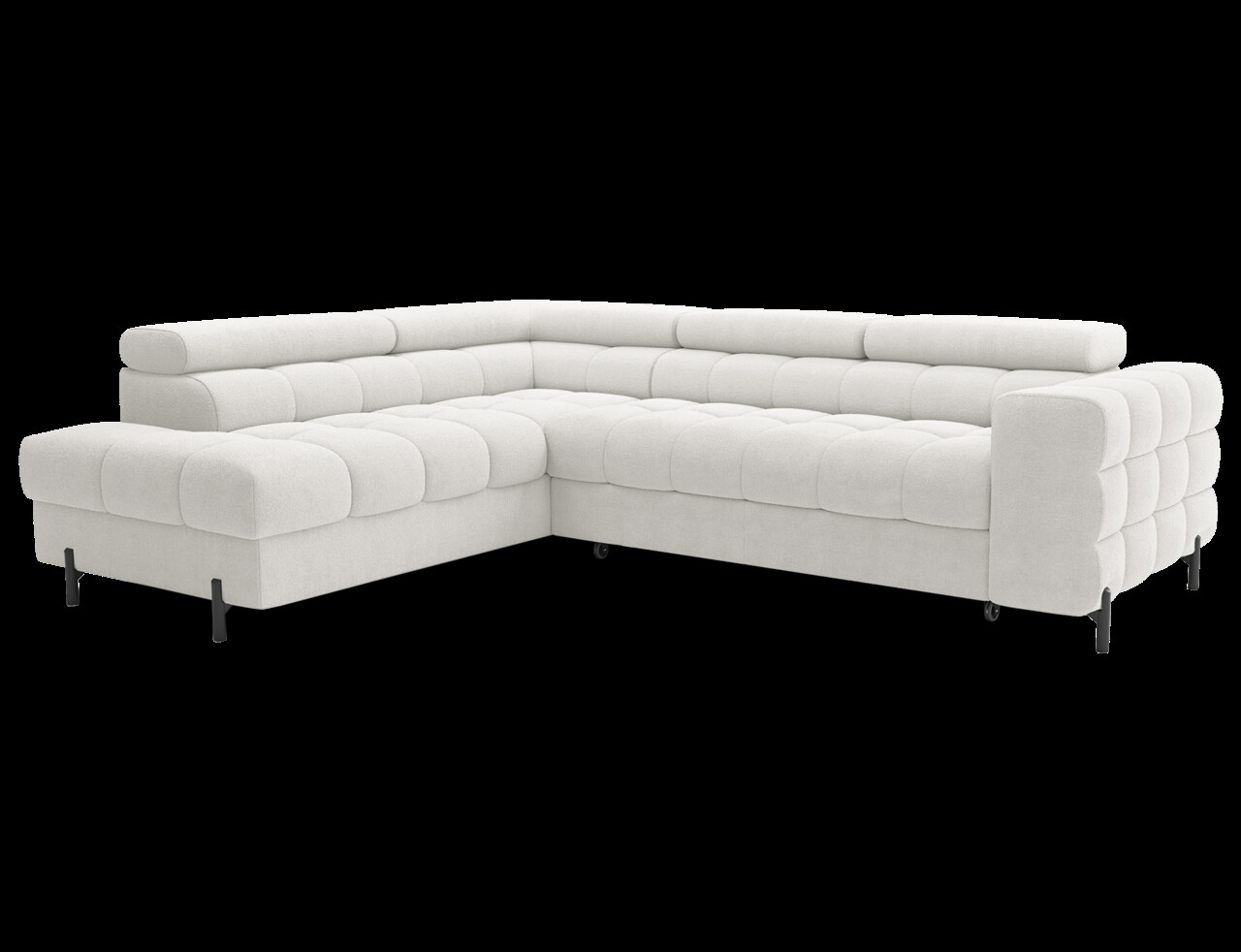 Coltarul extensibil stânga Ferucce 276x200x93 cm, fabricat din lemn de pin și tapiserie din poliester alb, este alegerea ideală pentru un interior modern. Cu capete reglabile, permite ajustarea înălțimii spătarului pentru un confort personalizat. Designul său elegant oferă nu doar un loc generos pentru relaxare, ci și un plus estetic sufrageriei. Dispune de umplutură din spumă de înaltă densitate, picioare metalice negre și un mecanism de extensie tip delfin, transformându-l ușor într-un pat cu suprafața de dormit de 123x195 cm. Lada de depozitare inclusă (180x92x17 cm) asigură soluții practice pentru organizare. Asamblarea este necesară.