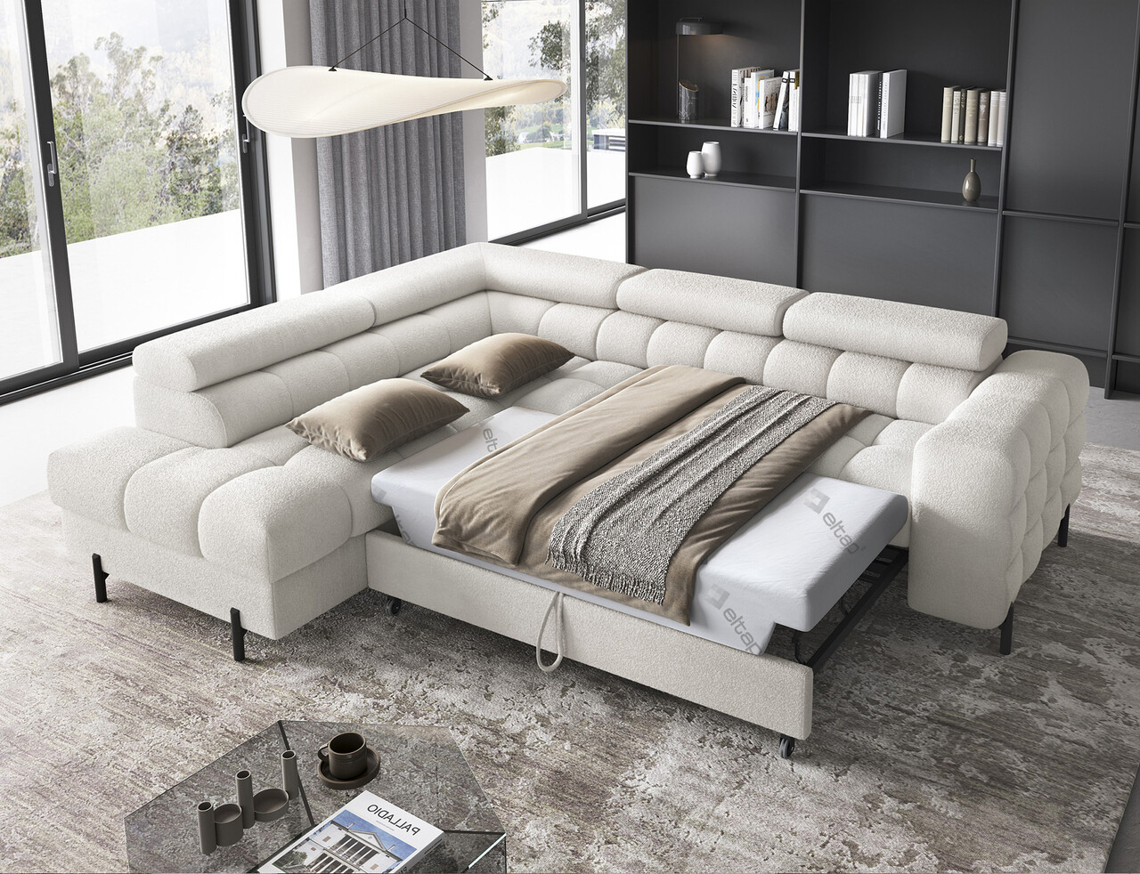 Coltar extensibil stanga 5 locuri ELTAP LT-01AMO Ferucce 276x200x93 cm lemn/poliester alb