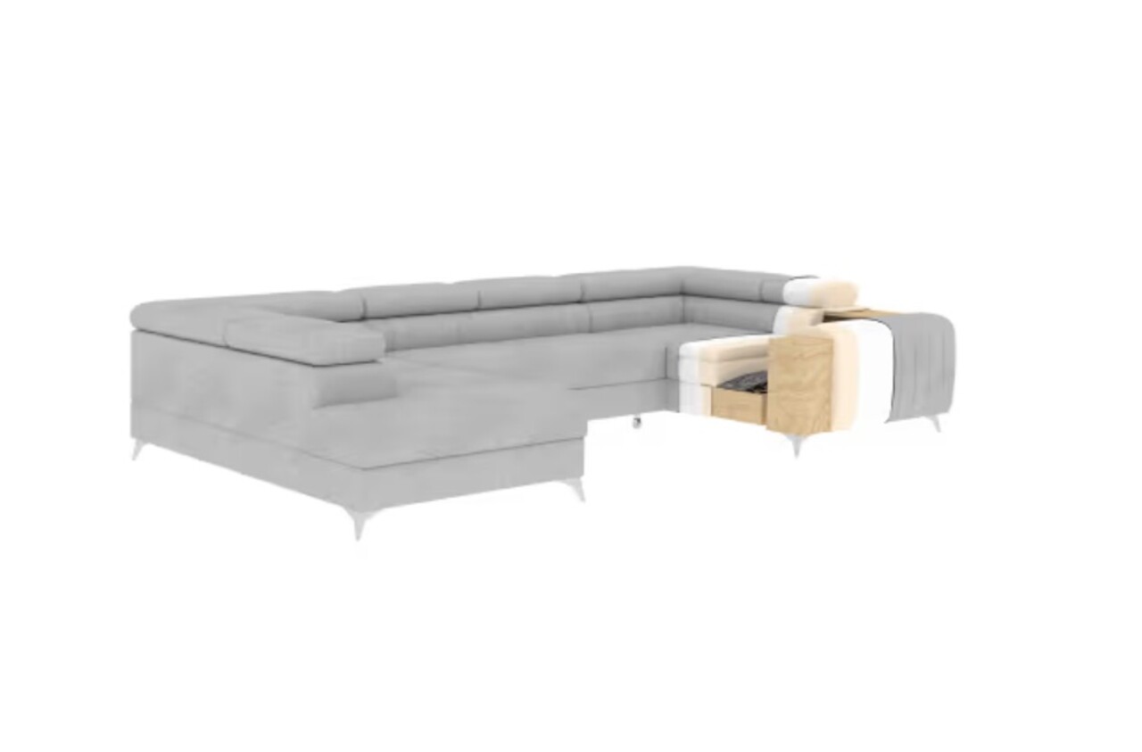 Coltar extensibil stanga 6 locuri ELTAP LT-130MAR Louis 347x202x92 cm lemn/poliester gri deschis