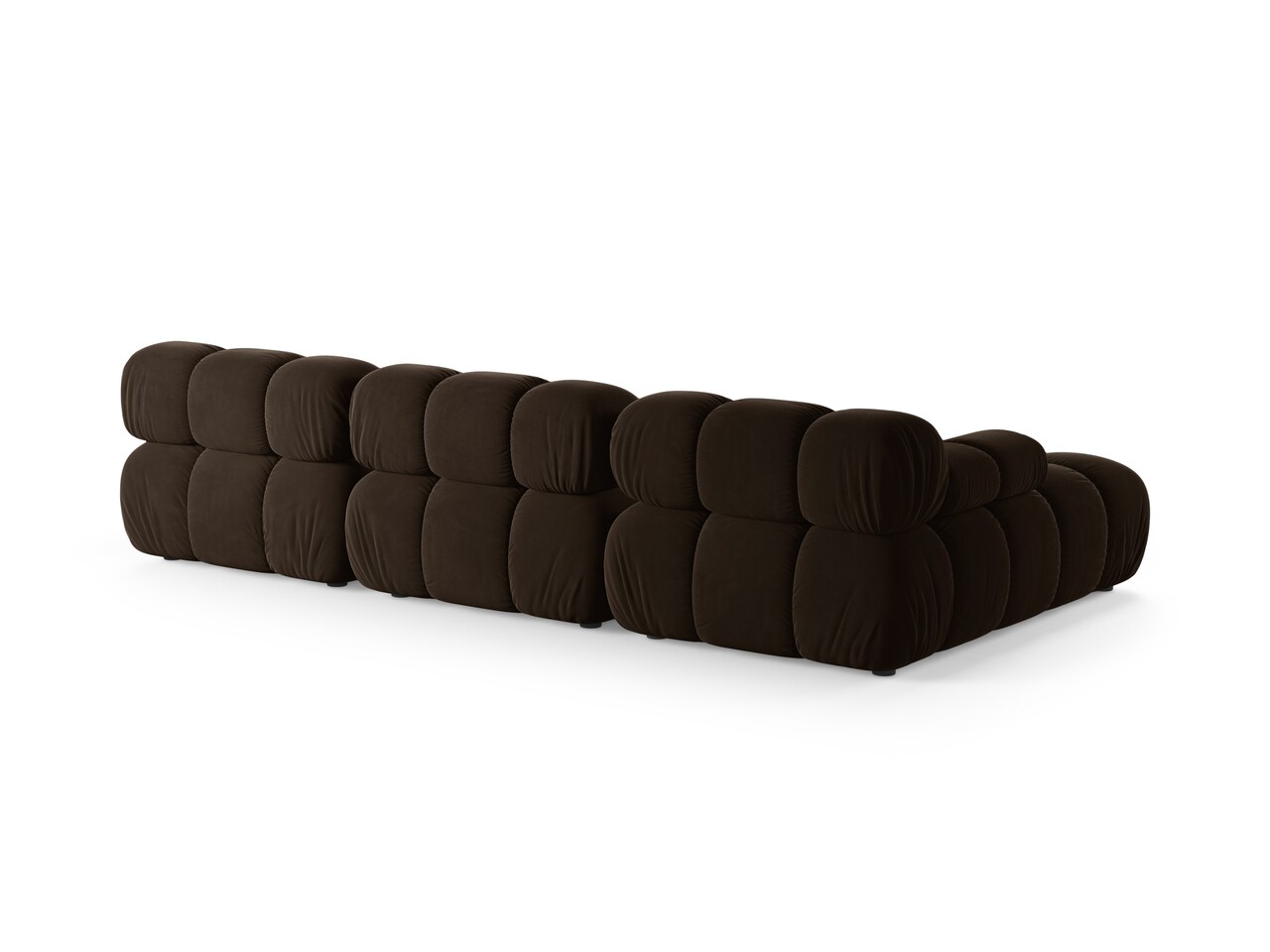 Colțarul modular stânga Bellis-51 de la Micadoni Home, cu dimensiuni de 282x155x70 cm, îmbină confortul cu eleganța. Acoperit cu o țesătură de catifea sintetică Bruvel de culoare maro închis, acest colțar oferă o atingere moale și un aspect rafinat. Structura din lemn masiv de pin și PAL asigură durabilitate, iar umplutura din spumă poliuretanică, combinată cu arcuri, garantează un confort optim. Cu o greutate maximă suportată de 450 kg, acest colțar este ideal pentru momentele de relaxare. Asamblarea picioarelor din plastic negru este simplă, iar designul său modern se integrează perfect în orice interior.