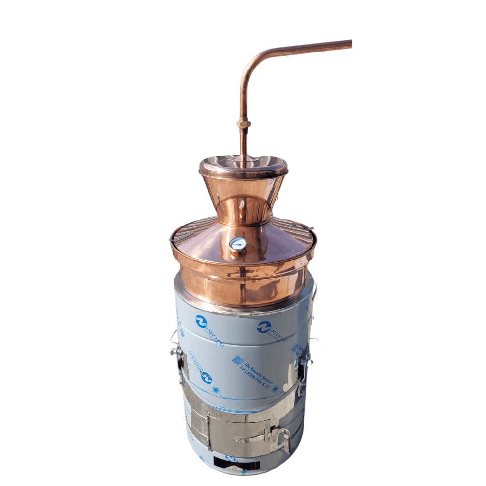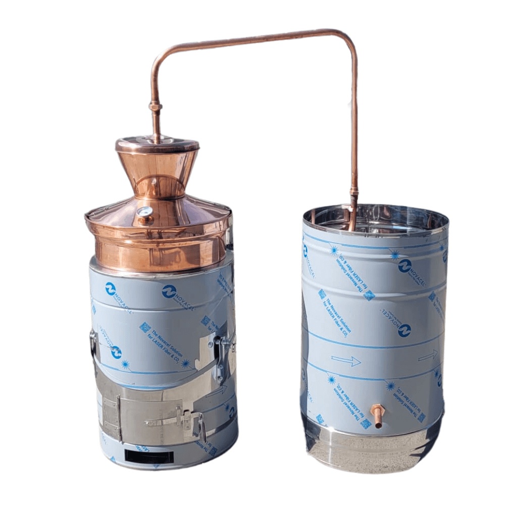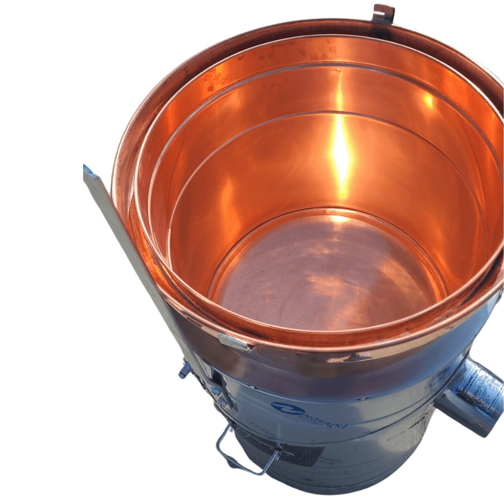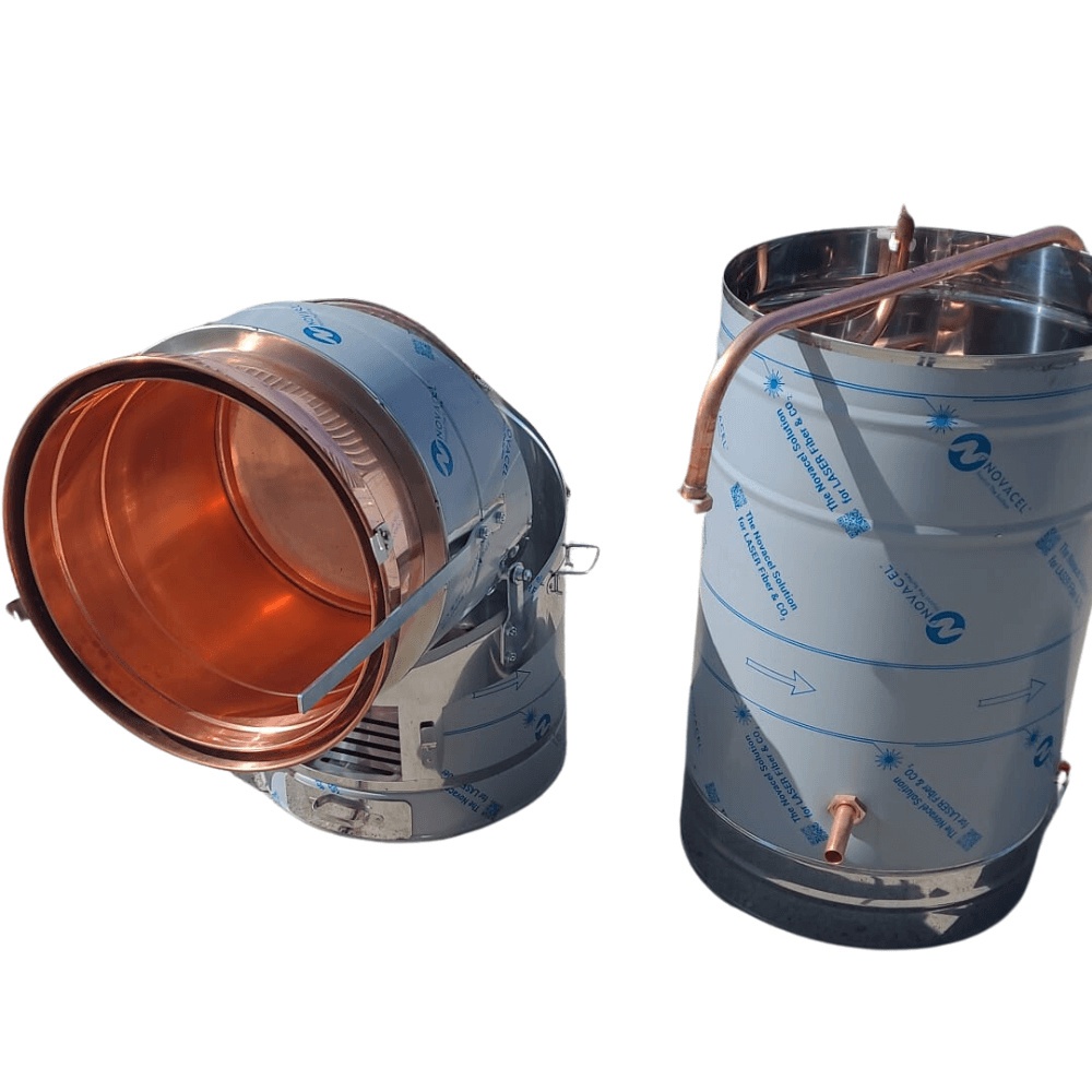 Cazanul de țuică de 120 litri "Meks" din cupru, fără amestecător, este ideal pentru pasionații de distilare. Cu o capacitate utilizabilă de 100 litri și un vas de răcire de 180 litri, acesta asigură o distilare eficientă. Focarul din inox de 1.2 mm și bazinul de răcire din inox de 0.8-1 mm garantează durabilitate. Cazanul beneficiază de o serpentină de 3,8 m, iar toate componentele din cupru au o puritate de 99.97%. Etanșarea cu apă între capac și corpul cazanului asigură o funcționare optimă. Include termometru pe capac, dar nu vine cu tavă cenușar.