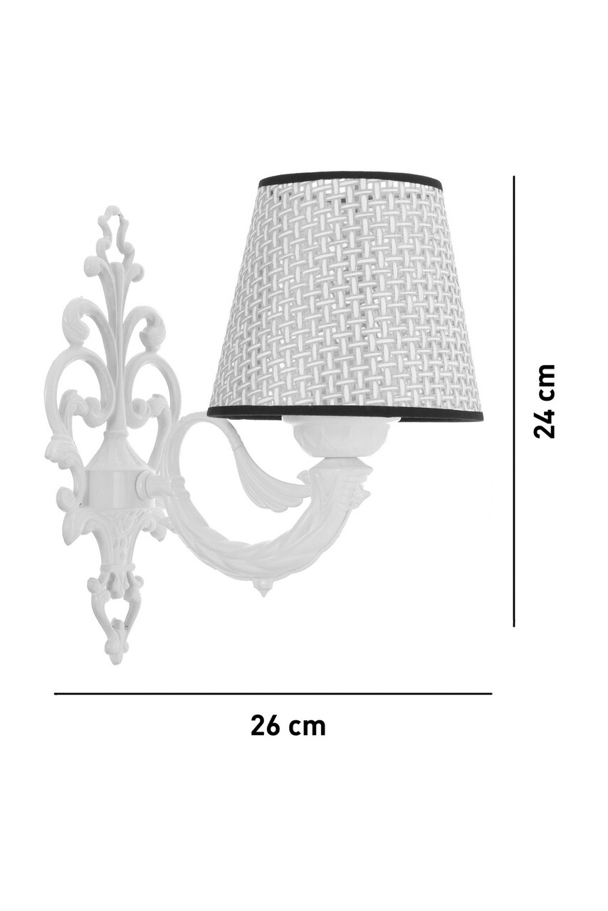 Aplica de pereteAbajul din material textilDimensiunea capacului: 15 x 10 x 13 cmInaltime totala: 24 cmAdancime: 26 cmTip soclu: 1 x E 27 Max 40 WBecul nu este inclus220-240 VGrad de protectie: IP20