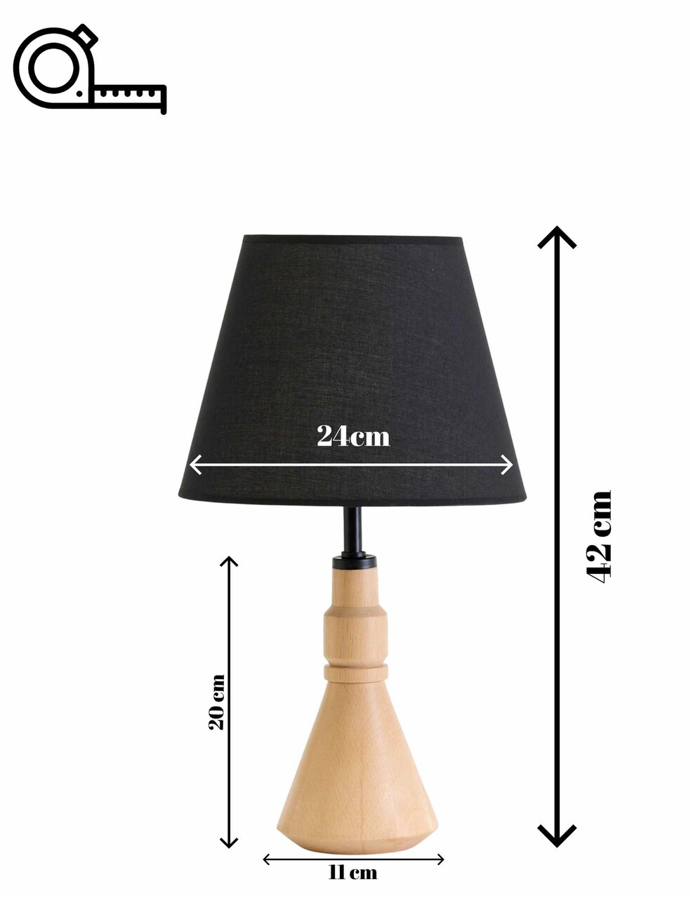 Lampa de masaAbajul din material textilDimensiunea capacului: Ø24 h:18 cmInaltime totala: 42 cmLungimea cablului: 150 cmButon de pornire/oprire pe cabluTip soclu: 1 x E 27Becul nu este inclus220-240 VGrad de protectie: IP20