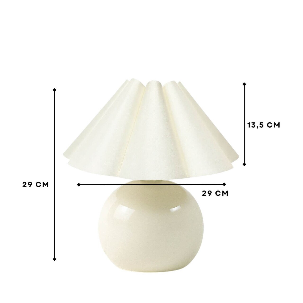 Lampa de masaCapac PVCDimensiunea capacului: Ø29 h:13,5 cmInaltime totala: 29 cmLungimea cablului: 150 cmButon de pornire/oprire pe cabluTip soclu: 1 x E 27 Max 40 WBecul nu este inclus220-240 VGrad de protectie: IP20