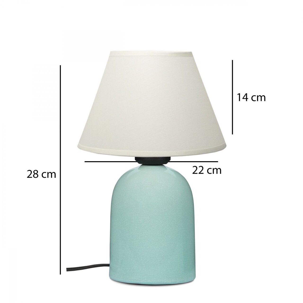 Lampa de masaAbajul din material textilDimensiunea capacului: Ø22 h:14 cmLungimea cablului: 150 cmInaltime totala: 28 cmTip soclu: 1 x E 27 Max 40 WBecul nu este inclus220 - 240 VGrad de protectie: IP20