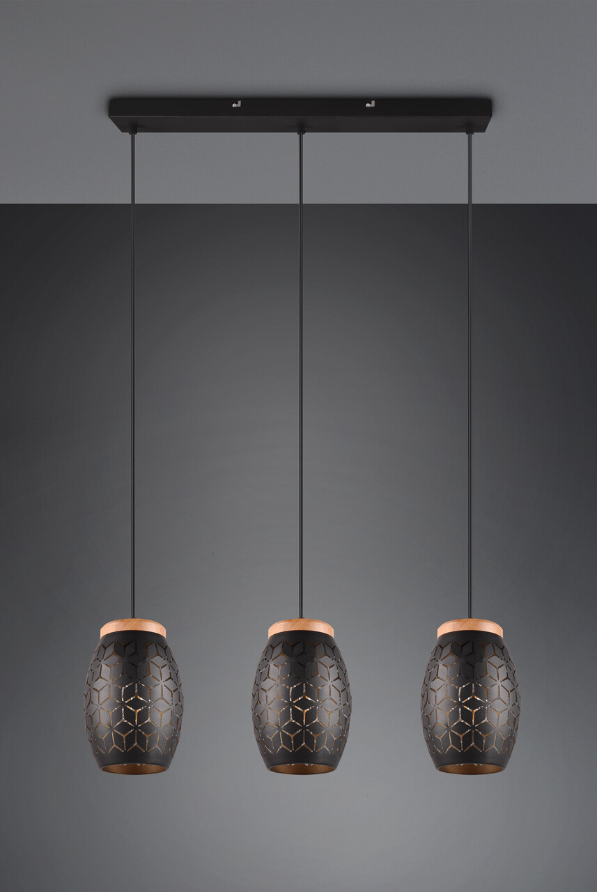 Lustra Bidar RL 71x15x150 cm 28W 3x E27 metal negru/natur