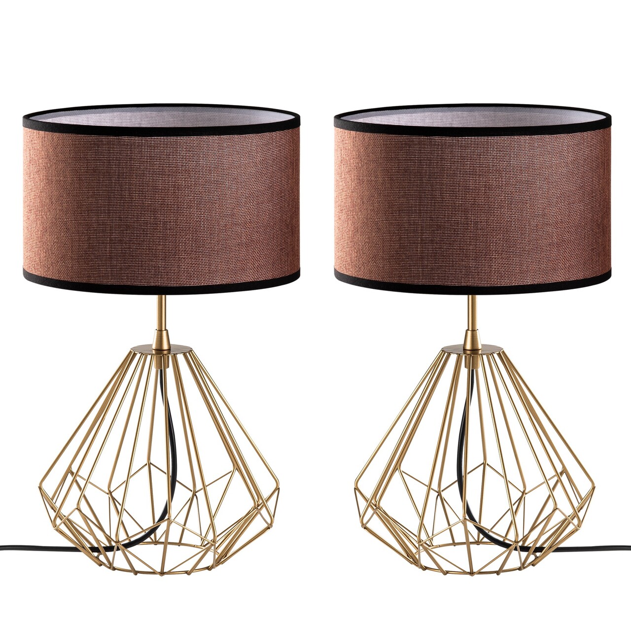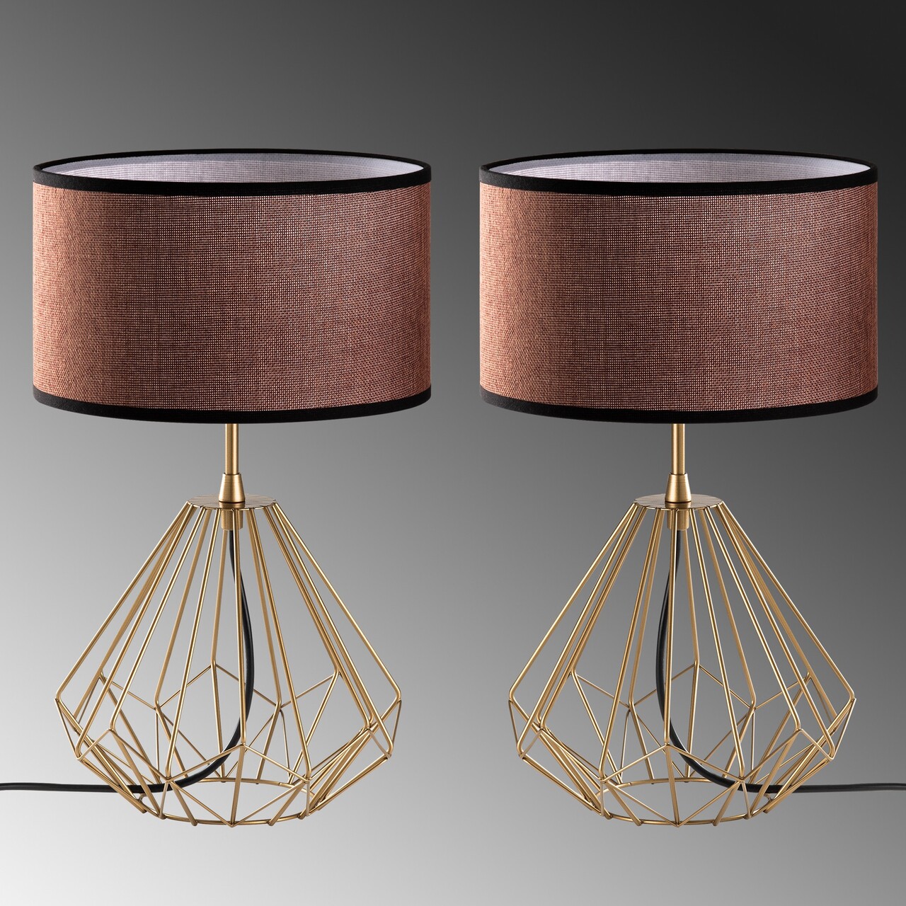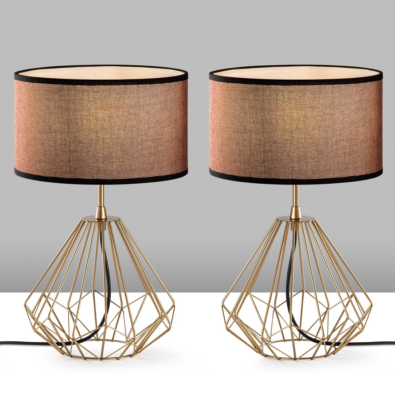 Set de lămpi de masă (2 piese)Abajul din material textilMarime: 25 x 25 x 43 cm (2 piese)Dimensiunea capacului: Ø25 h:15 cmLungimea cablului: 200 cmButon de pornire/oprire pe cabluTip soclu: 1 x E 27 Max 40 WBecul nu este inclus220-240 VGrad de protectie: IP20