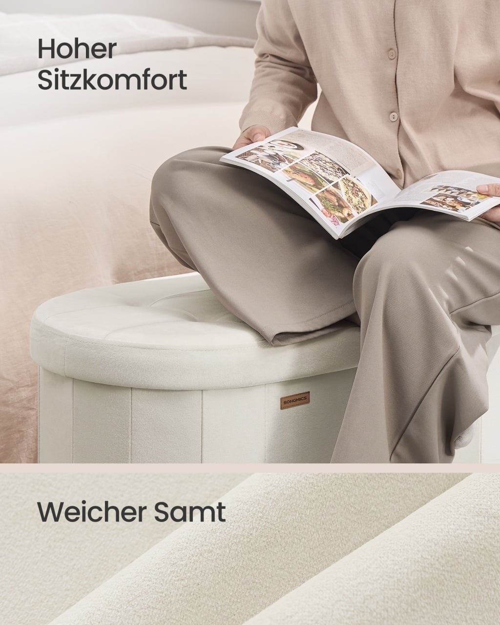 Cufar depozitare Songmics 110x38x38 cm — Organizare spațioasă și confort elegant Design modern și materiale de calitate Construit cu o siluetă inspirată din forme elegante, acest cufăr pliabil aduce o notă de rafinament în orice încăpere, datorită finisajului din catifea în nuanță alb crem și contururilor curate care definesc ambianța. Capacitatea de a funcționa atât ca element decorativ, cât și ca piesă practică transformă designul într-o declarație de estetică și versatilitate , conferind spațiului tău o prezență premium și plină de personalitate. Textura catifelei combinată cu suprafața fermă a capacului din MDF oferă o senzație tactilă plăcută și o impresie vizuală de durabilitate . Funcționalitate și organizare Cu un volum generos de 110 L și două compartimente interne, acest cufăr optimizează depozitarea permițându-ți să organizezi pături, haine sau încălțăminte fără efort, astfel reducând dezordinea iar camera rămâne aerisită și armonioasă. Capacitatea superioară de încărcare a capacului — până la 300 kg — îi conferă rol dublu, servind cu încredere ca banchetă, suport pentru picioare sau loc suplimentar pentru șezut, adaptându-se perfect în dormitor, living sau hol. Beneficiezi astfel de o soluție practică care protejează obiectele personale și menține un aspect spațios , organizator și functional . Montaj și întreținere Montajul este gândit pentru a fi simplu și rapid, oferindu-ți posibilitatea de a integra piesa imediat în decor, iar întreținerea nu solicită eforturi: curățarea suprafeței din catifea se realizează prin aspirare delicată și ștergere locală cu o cârpă umedă, iar capacele din MDF se întrețin ușor cu o lavetă uscată sau ușor umedă. Pentru siguranță suplimentară se recomandă fixarea pe suprafețe stabile și evitarea expunerii prelungite la umezeală, astfel prelungind durabilitatea produsului și păstrând intactă calitatea materialelor în timp. Comandă acum Alege acum cufărul Songmics și transformă orice colț într-un loc ordonat și elegant; comandă rapid pentru livrare și bucură-te imediat de confort și organizare premium. Detalii tehnice complete Dimensiuni și greutate Dimensiuni produs: 110 x 38 x 38 cm Greutate produs: 7.5 kg Capacitate maximă: 300 kg Materiale și caracteristici Material corp: MDF (top 9 mm) și structuri textile Material tapițerie/finisaj: Catifea, burete Culoare: Alb crem Montaj și pachet Stare asamblare: Neasamblat Conținut pachet: 1 x Cufar depozitare (LSF297LH01) — elemente: burete, catifea, material Oxford, material nețesut, MDF Stil și origine Stil: Minimalist Destinație recomandată: Living, Hol, Dormitor