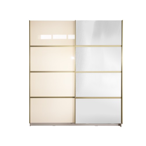 Gold Dulap 1800 Crem cu usi MDF Lucios si Oglinda + 2 Comode