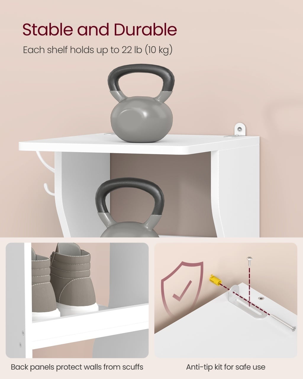 Pantofar Vasagle 26.5 x 30 x 147 cm — Organizare slim pentru spații înguste Design modern și materiale de calitate Construit pentru simplitate și eleganță, acest pantofar se integrează natural în holurile compacte oferind o prezență discretă, dar rafinată. Finisajul în alb mat subliniază liniile curate ale corpului, iar combinația de PAL și oțel garantează o senzație tactilă plăcută și o estetică durabilă, astfel încât mobilierul rămâne atractiv în timp. Datorită proporțiilor sale slim, conferă încăperii o notă de rafinament și optimizează vizual și practic spațiul disponibil. Funcționalitate și organizare Cu cele 9 niveluri și spațierea de 17 cm între rafturi, pantofarul acomodează atât încălțămintea joasă, cât și bocancii sau sneakers-ii mai înalți, oferindu-ți libertatea de a organiza eficient colecția. Rafturile cu rol de protecție pentru perete reduc uzura suprafețelor, iar cârligele laterale, montabile pe stânga sau pe dreapta, permit depozitarea cheilor și portofelelor pentru un acces rapid dimineața; astfel, organizezi , protejezi și optimizezi fluxul zilnic. Datorită capacității solide a fiecărui raft, poți așeza chiar și încălțăminte de drumeție mai grea fără griji, ceea ce transformă pantofarul într-un element cu adevărat versatil și spațios pentru spațiile mici. Montaj și întreținere Montajul este conceput pentru a fi intuitiv, iar pachetul include toate accesoriile necesare, astfel încât instalarea nu devine o corvoadă. Pentru siguranță maximă, produsul vine cu un kit anti-răsturnare pe care trebuie să-l folosești pentru a fixa corpul în perete, reducând riscul accidentelor; acest lucru oferă încredere în utilizare, în special în locuințele cu trafic intens. Îngrijirea este simplă: șterge suprafețele din PAL cu o cârpă moale și umedă și evită substanțele abrazive pentru a menține durabilitatea și aspectul premium în timp. Comandă acum Adaugă ordine și stil holului tău — comandă pantofarul Vasagle acum și transformă spațiul într-un loc mai organizat și elegant. Detalii tehnice complete Dimensiuni și greutate Dimensiuni produs: 26.5 x 30 x 147 cm Greutate produs: 9.14 kg Capacitate maximă: 10 kg per raft; 5 kg per cârlig Materiale și caracteristici Material corp: PAL și oțel Culoare: Alb mat Montaj și pachet Stare asamblare: Neasamblat Conținut pachet: 1 x Pantofar, Accesorii de montaj, Kit anti-răsturnare (sistem de fixare în perete), Instrucțiuni de asamblare Stil și origine Stil: Minimalist Destinație recomandată: Hol, Debara, Apartament Informații importante Asigură-te că fixezi pantofarul de perete cu kitul anti-răsturnare inclus pentru a preveni eventuale accidente; aceasta este o măsură de siguranță esențială, mai ales în locuințele cu copii sau trafic intens. Nu depăși capacitatea recomandată: fiecare raft suportă până la 10 kg, iar fiecare cârlig până la 5 kg, astfel încât încărcarea excesivă poate compromite stabilitatea și durabilitatea produsului.
