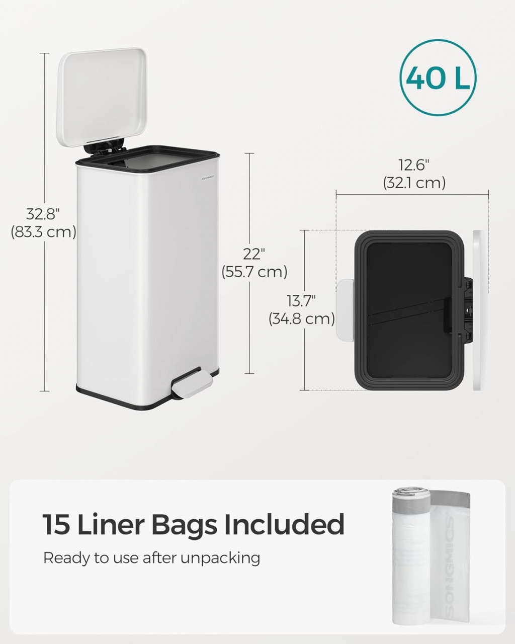 Cos de gunoi Songmics Alb 34.5×32×59.5 cm