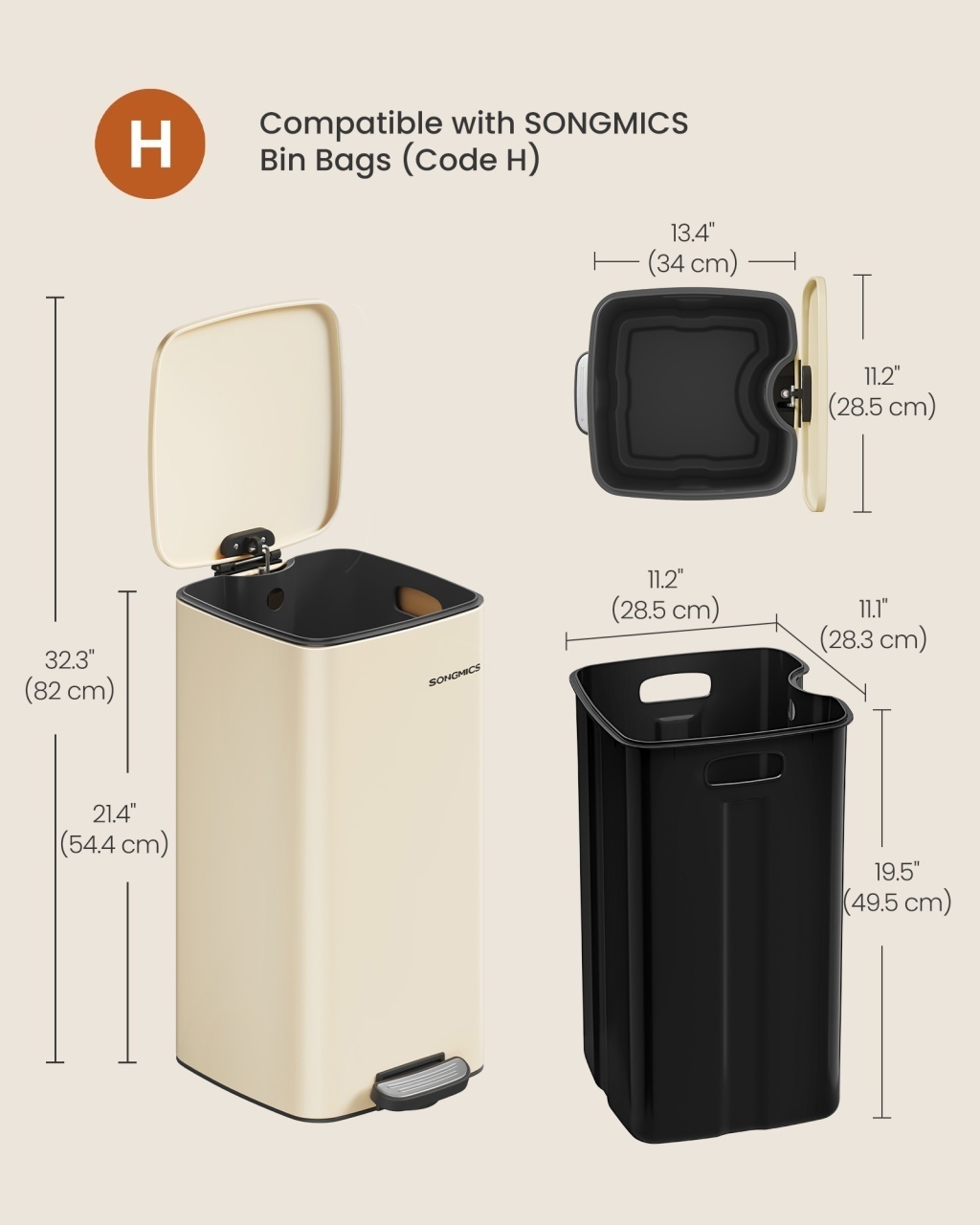 Cos de gunoi Songmics Bej 28.5x34x54.4 cm