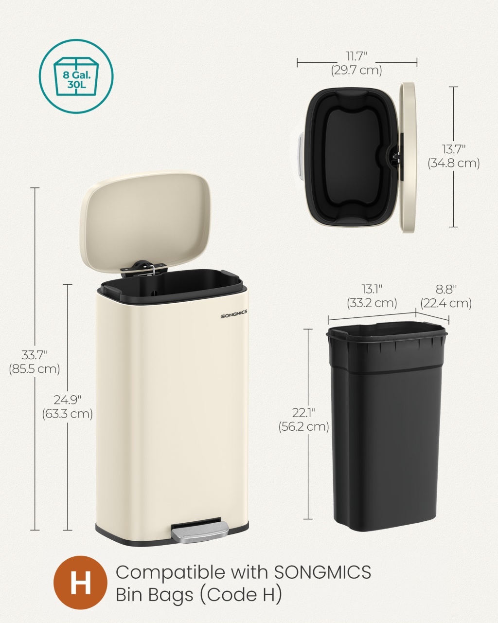 Cos de gunoi Songmics Bej 34.8x29.7x63.3 cm