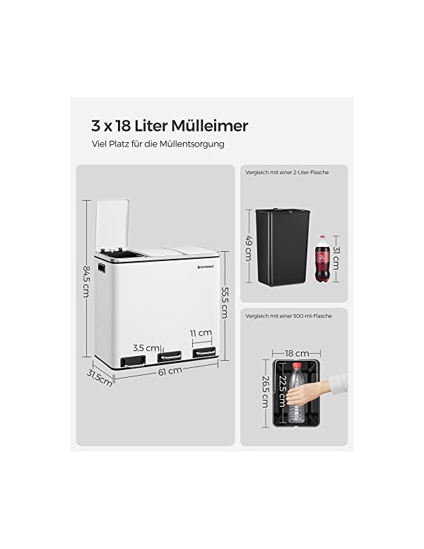 Cos pentru reciclare 3 x 18L Soft-Close Alb LTB54WT 61 x 31 x 56 cm