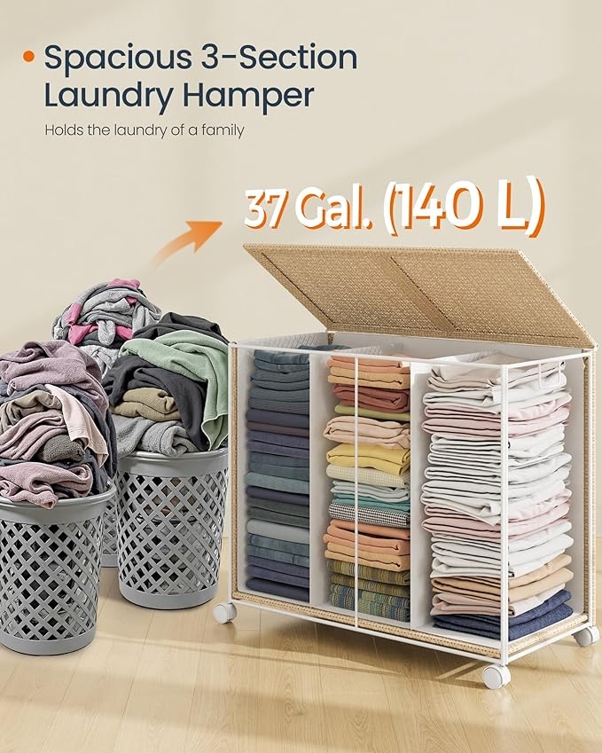 Coșul de rufe Songmics Natur LCB602N01 îmbină eleganța cu funcționalitatea. Fabricat din oțel durabil și țesătură sintetică, acesta are un design bej natural și alb mat, perfect pentru orice decor. Dimensiunile sale de 66,5 x 37,5 x 65 cm oferă un spațiu generos, iar greutatea de 4,4 kg îl face ușor de mutat. Capacitatea maximă statică a coșului este de 2 kg, iar a capacului este de 5 kg, asigurându-vă că rufele sunt păstrate în siguranță. Acest coș este soluția ideală pentru organizarea rufelor într-un mod elegant și practic.
