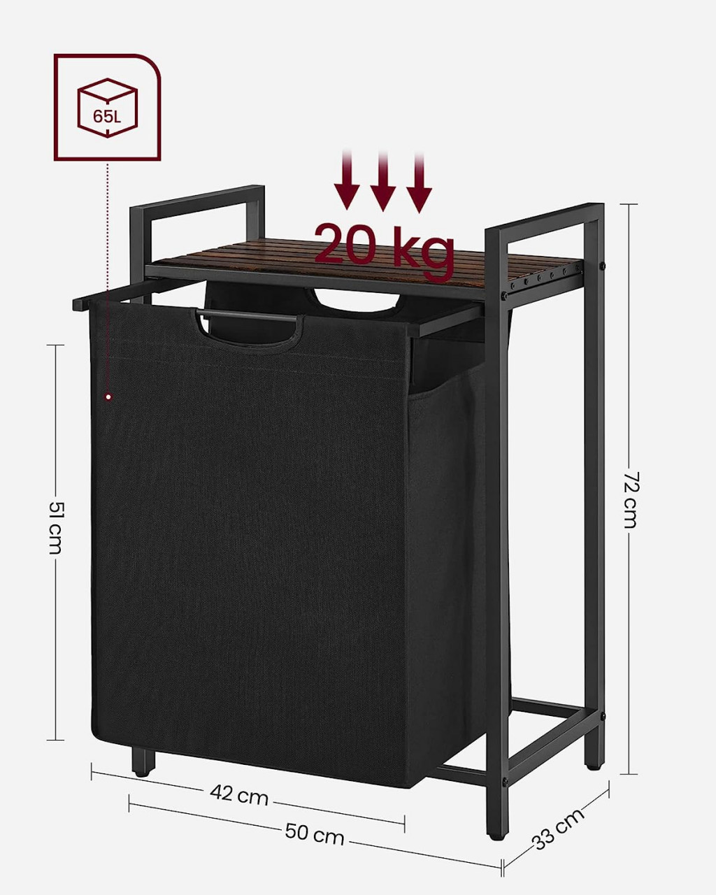 Cos de rufe Vasagle Maro-Negru 50x33x76 cm