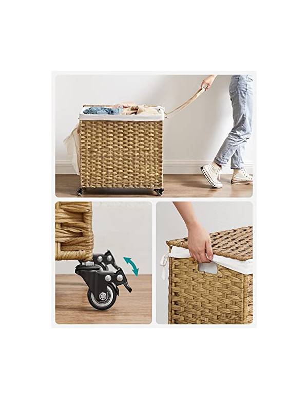 Cos pentru rufe cu roti Songmics 140L Natural 66 x 33 x 60 cm