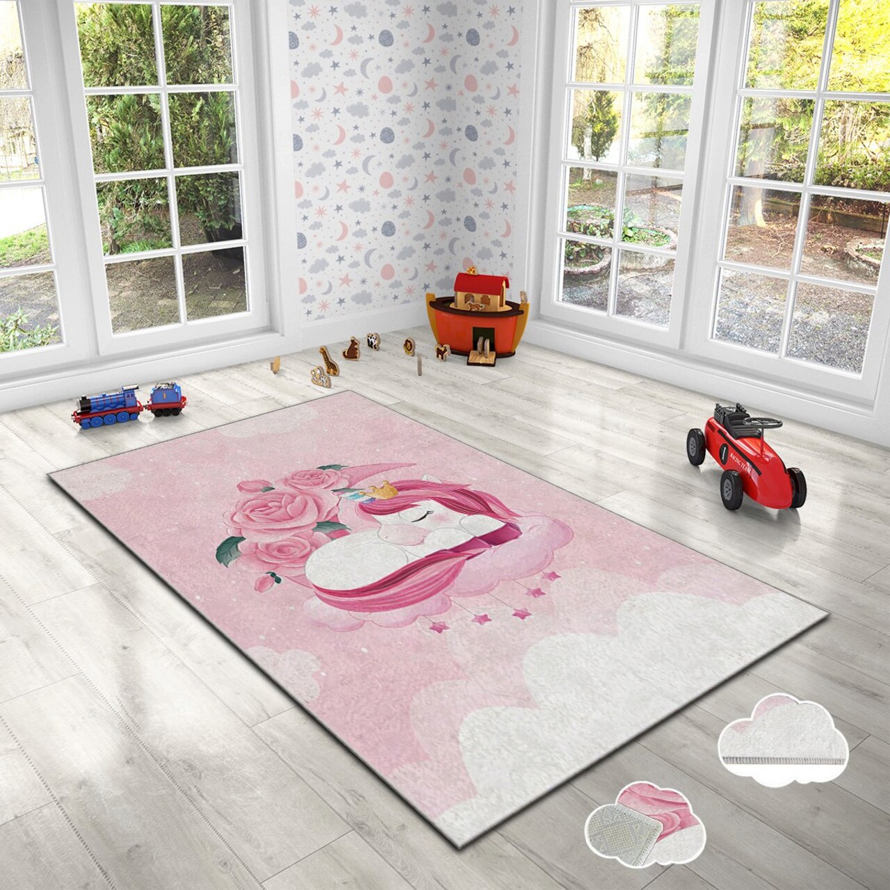 Covor pentru copii Hmı Kdc-42 80x140 cm, multicolor, ideal pentru a aduce un strop de veselie în camera celor mici. Fabricat dintr-o țesătură catifelată, covorul are o imprimare vibrantă și o greutate de 740 g/m². Partea inferioară este dotată cu puncte din pâslă anti-alunecare, asigurând siguranța în timpul jocului. Datorită buretelui laminat, covorul este ușor de curățat și oferă confort suplimentar. Cu o înălțime a firelor de 2 mm, acest covor antibacterian este perfect pentru un mediu sănătos și plăcut.