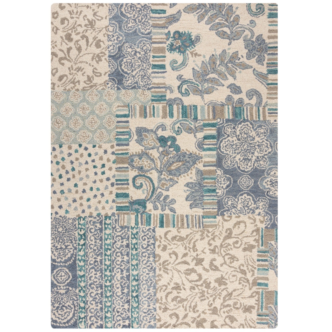 Covorul Eloise Patchwork Albastru 160x230 cm de la Flair Rugs îmbină stilul tradițional cu confortul modern. Realizat din lână 100% și tuftat manual în India, acest covor prezintă un design floral captivant, aducând un aer cald și primitor în orice încăpere. Cu o densitate de 3500 gr/mp și o înălțime a firului de 8 mm, oferă o textură catifelată și durabilitate remarcabilă. Este compatibil cu încălzirea în pardoseală și se întreține ușor, fiind ideal pentru a adăuga un strop de eleganță în casa dumneavoastră. Comandați acum pentru a transforma spațiul!