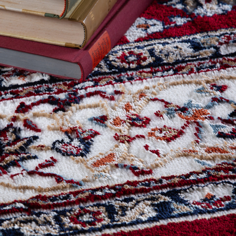 Covorul My Isfahan Roșu 120x170 cm aduce eleganță și confort în orice încăpere. Designul său sofisticat, cu motive florale și geometrice inspirate din stiluri orientale, oferă un aspect atemporal. Fabricat din 100% poliester, cu spate din iută, acest covor este durabil și compatibil cu încălzirea prin pardoseală. Tehnica tradițională de țesut la război mecanic asigură o calitate superioară. Cu o înălțime a firului de 11 mm și o grosime totală de 15 mm, covorul My Isfahan Roșu este ușor de întreținut și ideal pentru a transforma locuința ta într-un spațiu cald și primitor.