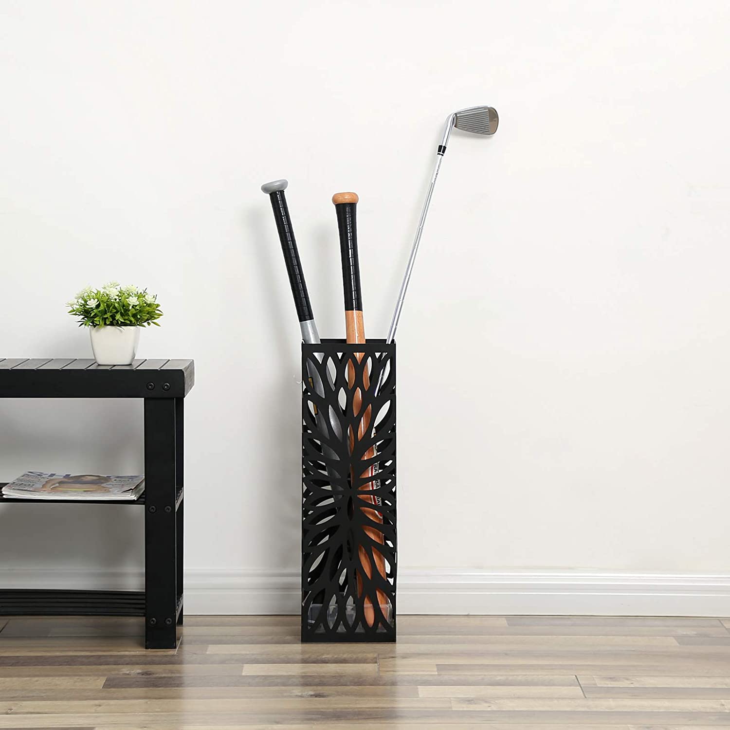 Suportul negru pentru umbrele BAYAN este un accesoriu practic și elegant, realizat din metal de înaltă calitate. Cu dimensiuni de 15,5 cm lățime și adâncime, și o înălțime de 49 cm, acesta are o greutate de 1,3 kg, ceea ce îl face ușor de manevrat. Setul include 4 cârlige pentru agățarea umbrelor uscate și mai mici. Echipat cu o tavă de apă detașabilă din plastic, suportul asigură o gestionare eficientă a apei, care curge direct în tavă, menținând astfel curățenia. Acest suport versatil poate fi utilizat și pentru alte articole, precum bețe de nordic walking.