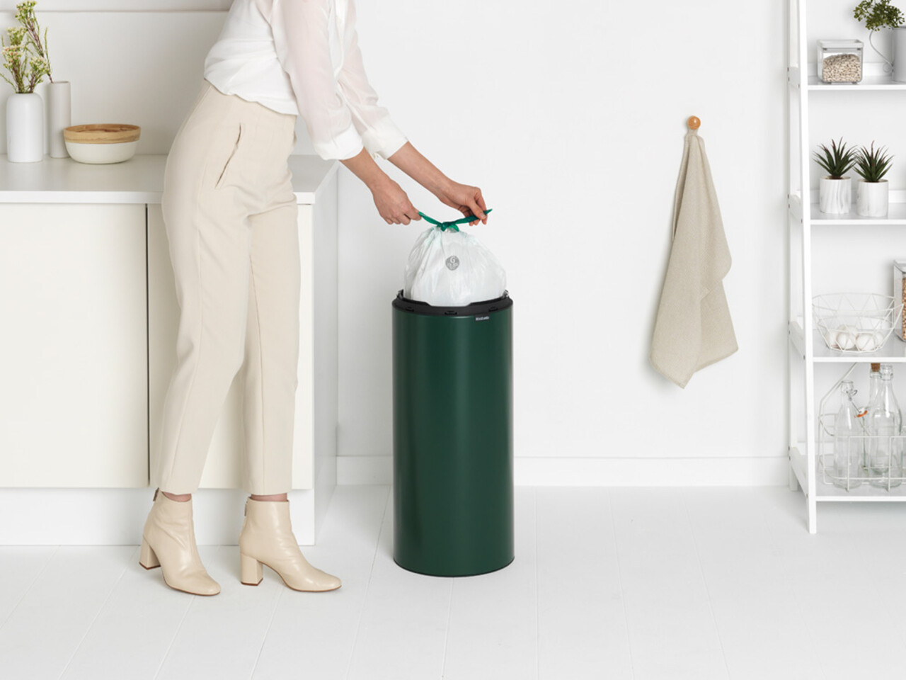 Avantaje si specificatiiSistem imbunatatit de deschidere si inchidere „Soft-Touch” pentru o operare si mai usoara si mai lejera ca niciodata.Design unic al balamalei - capacul se deschide silentios.Unitate de capac metalica detasabila - sacul de gunoi este usor de schimbat.Galeata interioara din plastic detasabila - usor de curatat.Gauri speciale de ventilatie in galeata interioara permit aerului in exces sa iasa atunci cand introduci sacul de gunoi si previn formarea unui vid - intotdeauna usor de schimbat.Manere rezistente pentru transport - fac ca acest cos de gunioi sa fie usor de mutat chiar si cand este plin.Saci de gunoi Brabantia asortati, disponibili cu banda de legat (marimea G) - potrivire perfecta si fara infasurare inestetica.Margine protectoare din plastic - previne deteriorarea podelei.Fabricat din materiale rezistente la coroziune - durabil si usor de curatat.