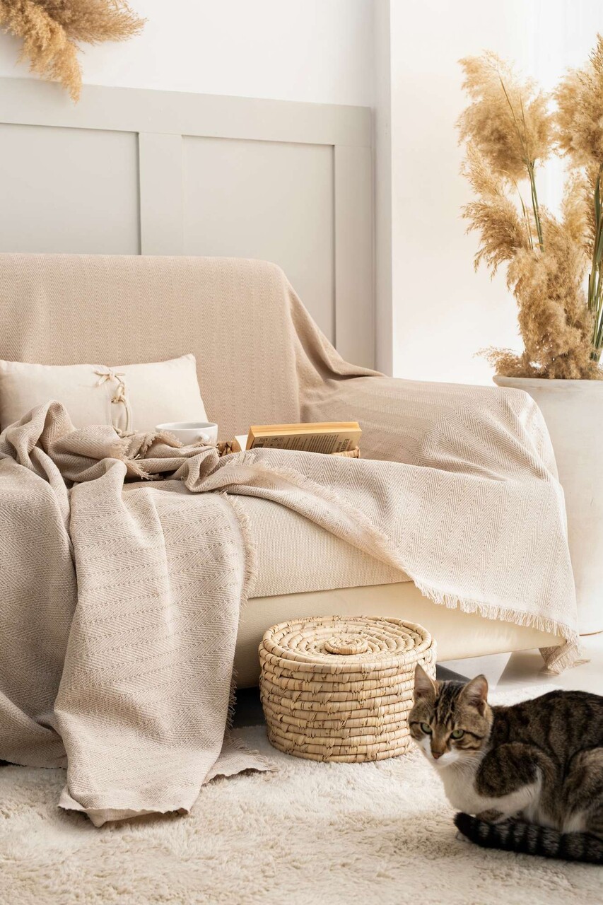 Cuvertura de pat L'essentiel Maison Rio Bumbac reciclat Bej