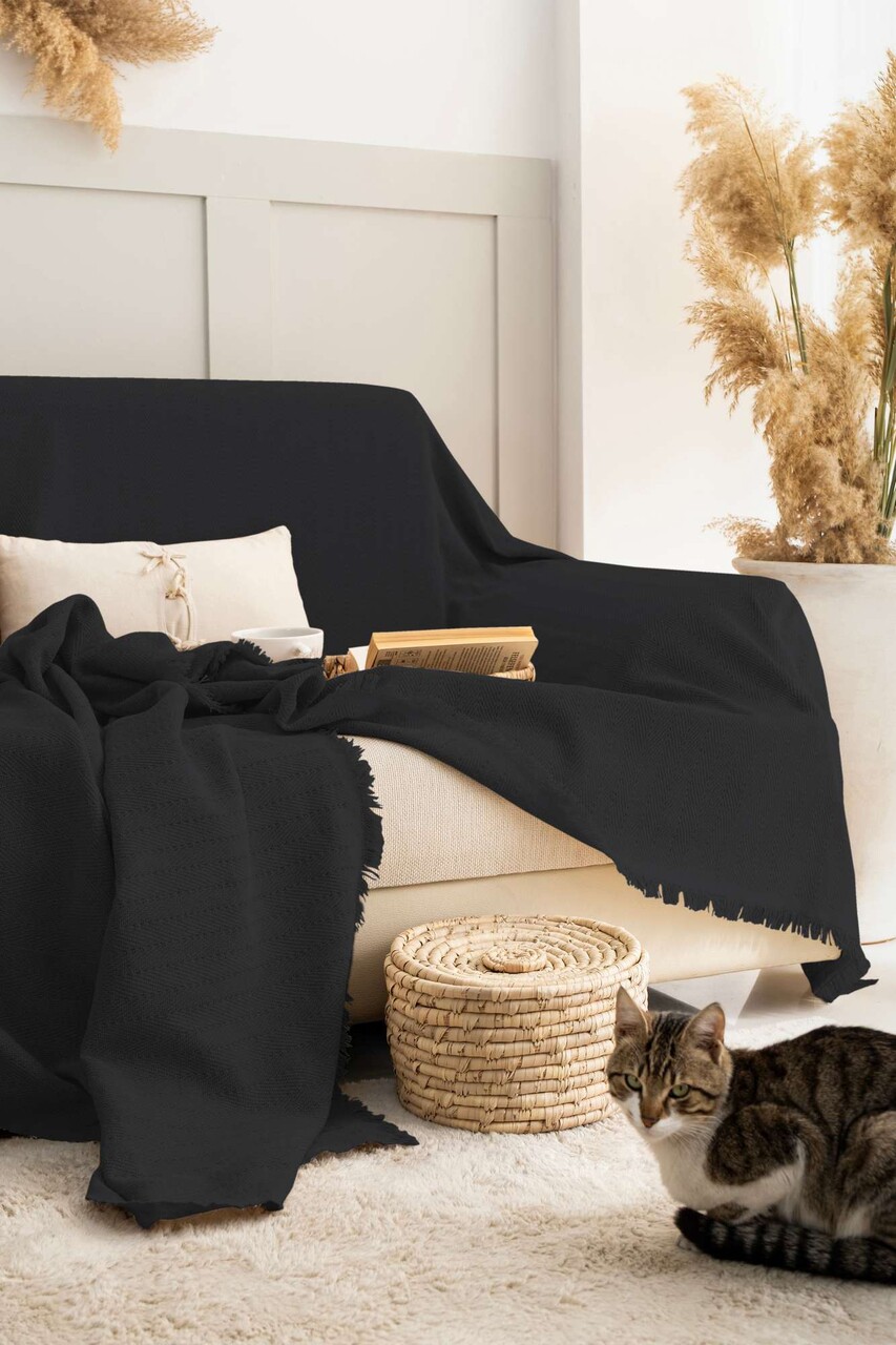 Cuvertura de pat L'essentiel Maison Rio este realizată din bumbac reciclat, având o greutate de 280 gr/m², ceea ce îi conferă o textură moale și plăcută la atingere. Cu dimensiunile de 180 x 300 cm, aceasta se potrivește perfect pe paturi duble sau single, aducând un plus de confort și stil în dormitorul tău. Culoarea fumurie adaugă o notă elegantă și modernă, fiind ușor de asortat cu diverse decoruri interioare. Alege cuvertura L'essentiel Maison Rio pentru a transforma atmosfera camerei tale într-un spațiu cald și primitor.