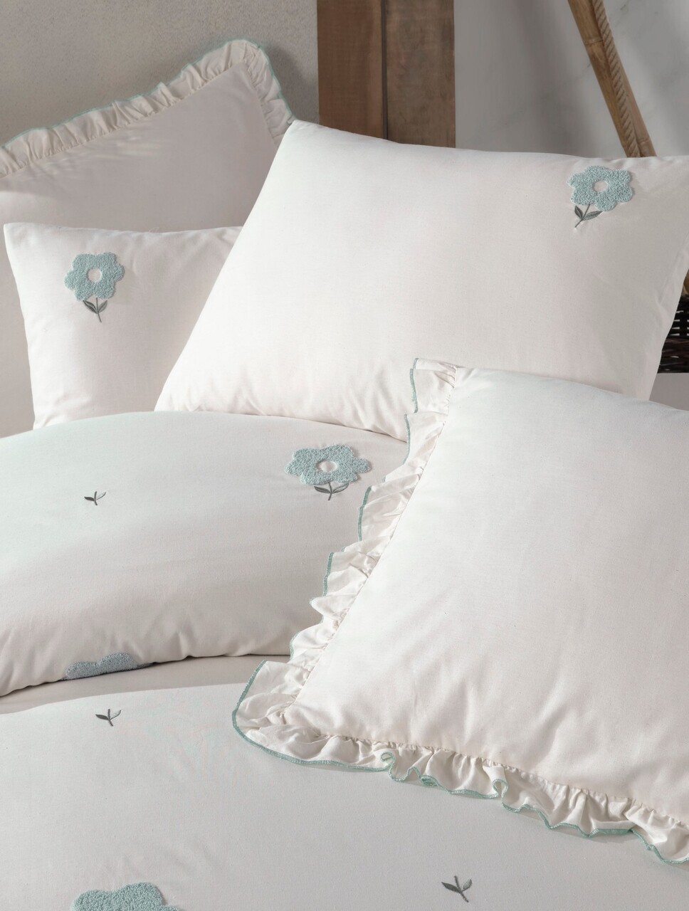 Set cuvertura de pat dubla 3 piese L'essentiel Maison Florita Bumbac Verde menta