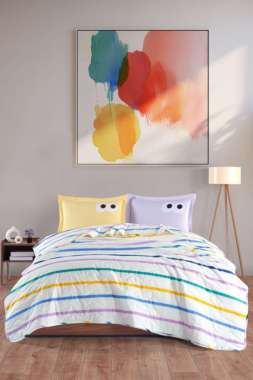 Set cuvertura de pat dubla 3 piese L'essentiel Maison Funny Galben / Liliac