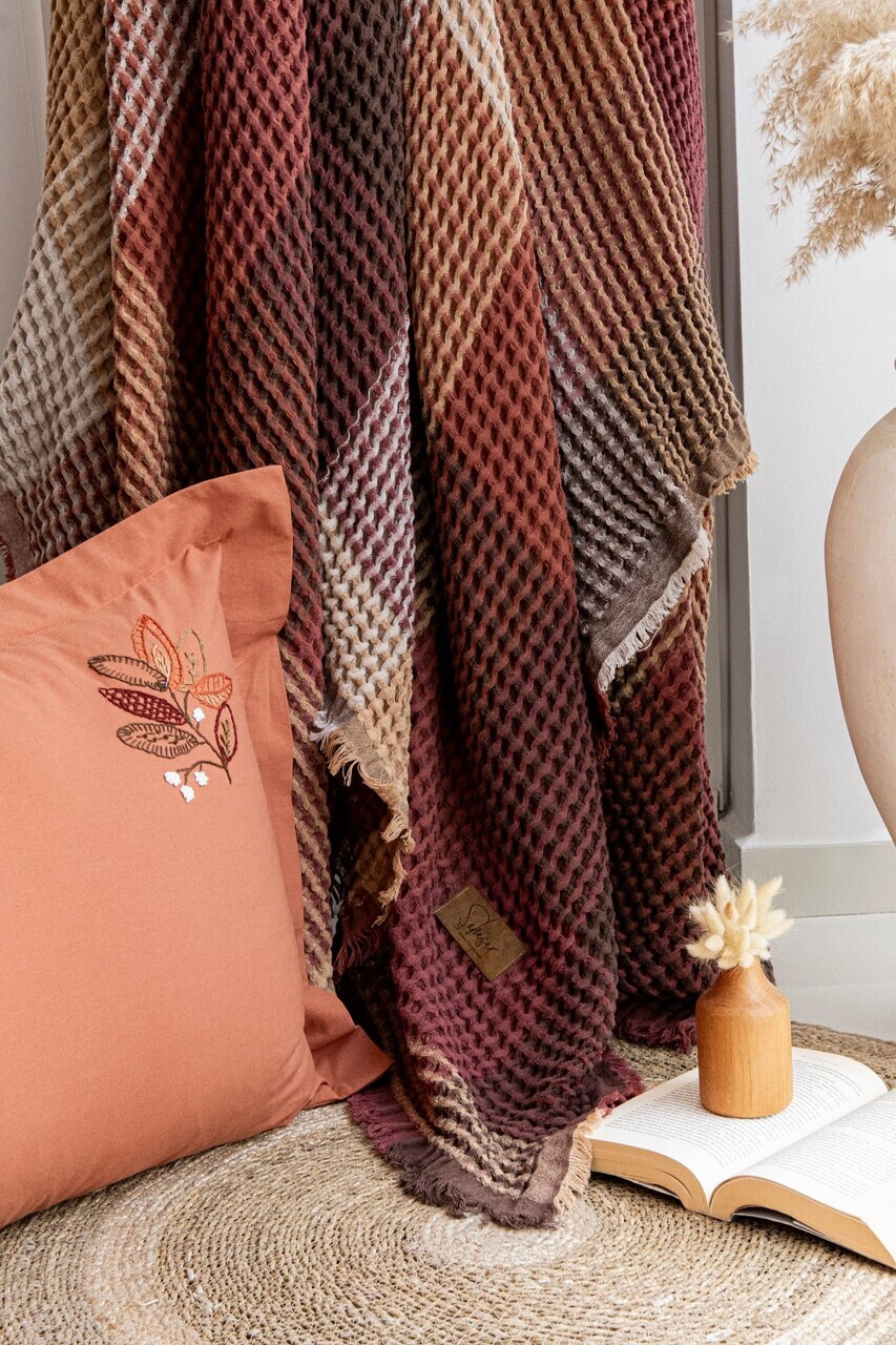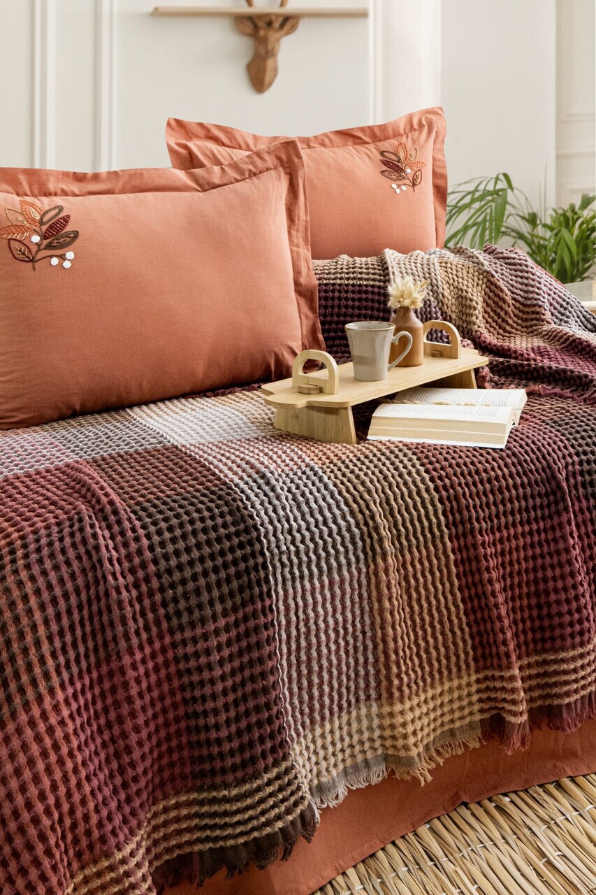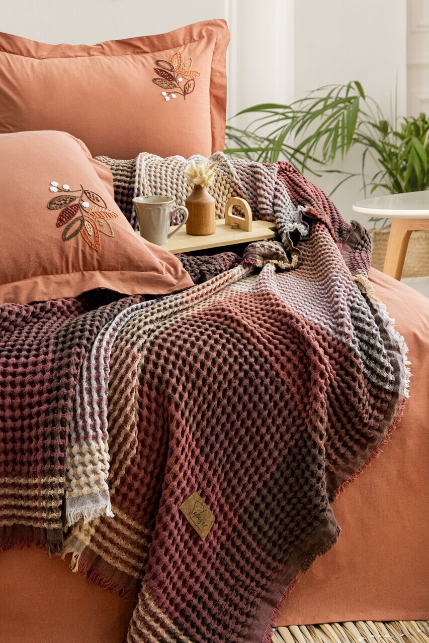Set cuvertura pique dubla L'essentiel Maison Floransa Bumbac Caramiziu