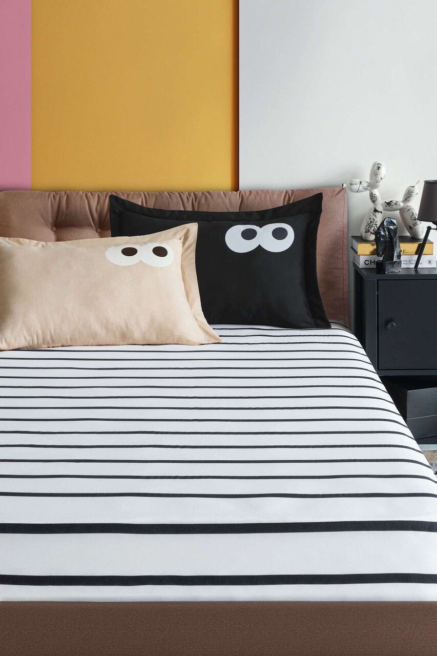 Set de pat dublu (cearceaf cu elastic si perne) 3 piese L'essentiel Maison Funny Cizgili Negru