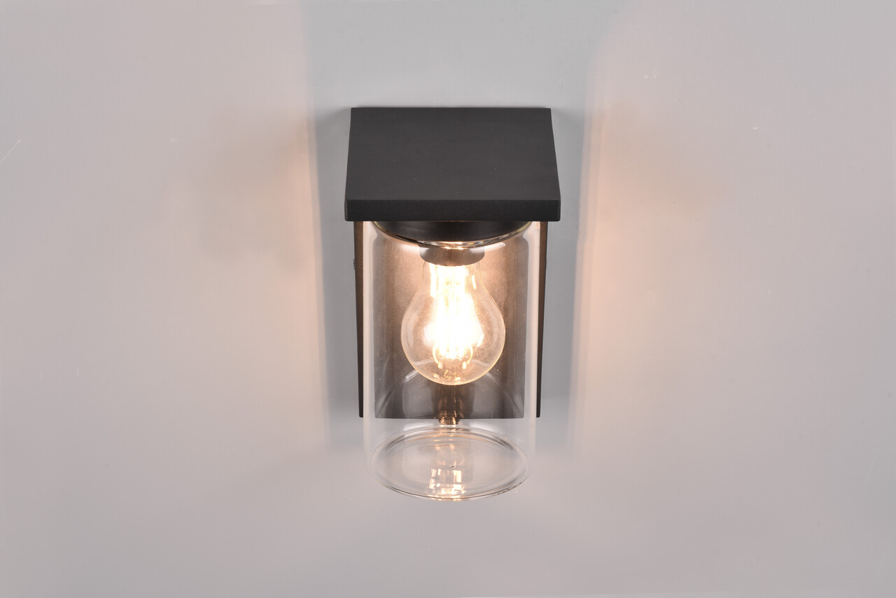 Aplica de perete pentru exterior Ardila, cu dimensiunile de 11.5x19 cm și puterea de 40W, este un element de iluminat modern, realizat din aluminiu negru mat și dotat cu un abajur din sticlă, care creează o atmosferă plăcută. Echipată cu un senzor de crepuscul, se aprinde automat la amurg și poate fi oprită printr-un întrerupător integrat. Cu un grad de protecție IP44, este rezistentă la intemperii. Se recomandă utilizarea unui bec LED E27 pentru o iluminare uniformă și eficientă. Această aplica aduce un plus de eleganță și durabilitate în spațiul dumneavoastră exterior.