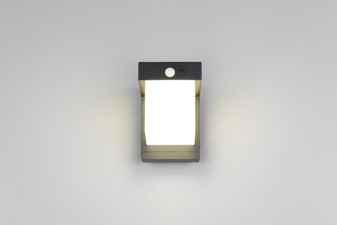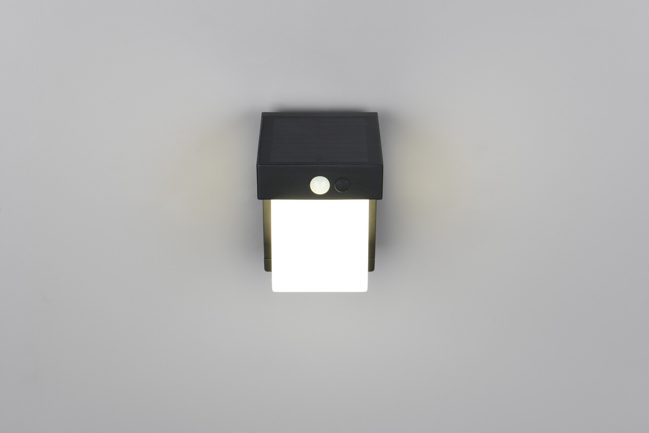 Aplica de perete pentru exterior Colombo RL 10x14 cm 5.5W 1x SMD plastic negru mat oferă iluminare eficientă și inteligentă. Cu un senzor de lumină și un senzor de mișcare integrate, aceasta se activează automat, asigurând o lumina de orientare permanentă la 10% intensitate în întuneric. La detectarea mișcării, lumina crește la 100%. Durata și sensibilitatea iluminatului sunt reglabile, iar puterea de ieșire se poate selecta pe două nivele. Funcționează pe bază de energie solară sau rețea, având o viață de 25.000 ore și un flux luminos de 650 lumeni. Indicele de redare a culorii este de 80, iar clasa de eficiență este F.