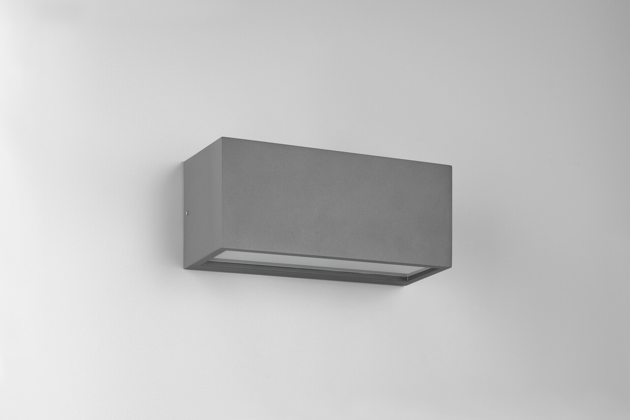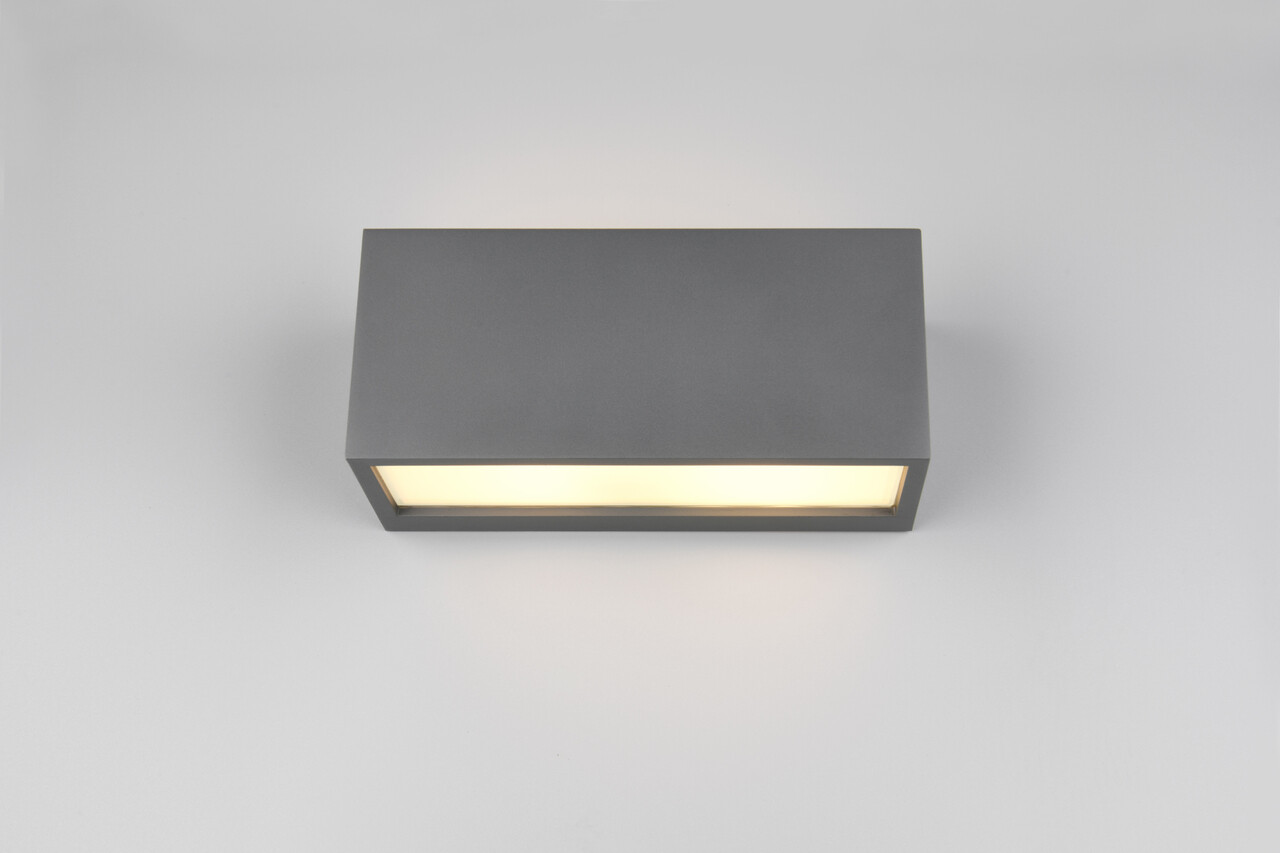 Aplica de perete pentru exterior Mayenne TRIO, cu dimensiuni de 25x11 cm și o putere de 10W, oferă o iluminare modernă și decorativă, strălucind atât în sus, cât și în jos. Realizată din aluminiu antracit, aceasta creează modele atmosferice pe fațade și pereți, aducând un efect wow în orice spațiu exterior. Cu grad de protecție IP44, este ideală pentru medii umede, cum ar fi băile sau soproanele de grădină. Designul său versatil permite integrarea ușoară în diverse zone ale proprietății. Se recomandă utilizarea becurilor LED pentru o iluminare eficientă și durabilă. Becurile nu sunt incluse.
