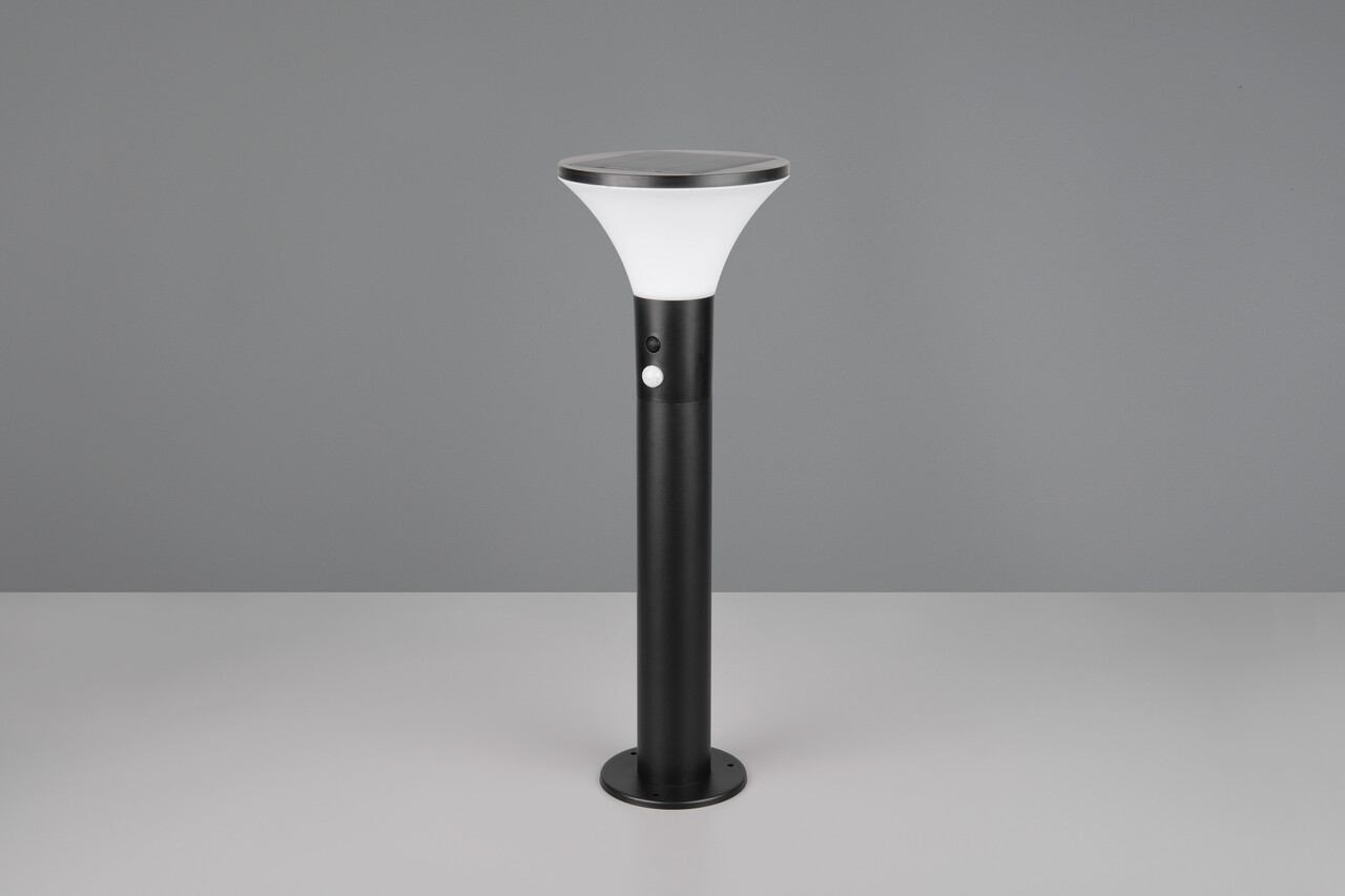 Lampadarul de exterior Gorda, cu dimensiuni de 17.5x50 cm și putere de 3.5W, aduce o notă de eleganță și funcționalitate în spațiile exterioare. Designul său modern, în negru mat, se integrează perfect în orice mediu. Dotat cu un panou solar integrat, acesta se poate alimenta atât solar, cât și prin rețeaua electrică, asigurând o iluminare constantă. Cu un senzor de mișcare și senzor de crepuscul, lumina se adaptează automat la condițiile de lumină, oferind o intensitate de 10% în întuneric și 100% la detectarea mișcării. Rezistent la intemperii (IP44) și cu o durată de viață de 30.000 de ore, Gorda este alegerea ideală pentru iluminarea sigură a căilor exterioare.