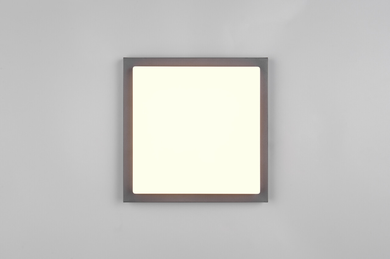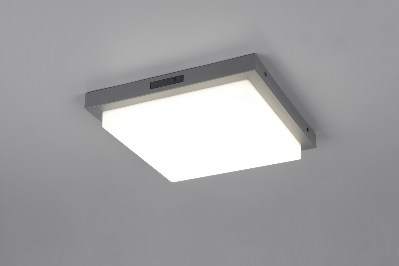 Plafoniera patrata pentru exterior Bermejo de la TRIO, cu dimensiuni de 30x30x5.7 cm și o putere de 14W, îmbină funcționalitatea cu designul modern. Aceasta plafonieră, realizată din metal antracit și alb, dispune de un senzor de mișcare integrat și permite reglarea temperaturii culorii luminii (alb cald, alb neutru, lumină naturală albă) printr-un DIP SWITCH. Cu o durată de viață de 30.000 de ore și un flux luminos de 1450 lumeni, Bermejo garantează eficiență și confort. Setul inclus de numere de casă oferă posibilitatea unei personalizări flexibile. Indicele de redare a culorii (CRI) este de 80, asigurând o iluminare plăcută și naturală.
