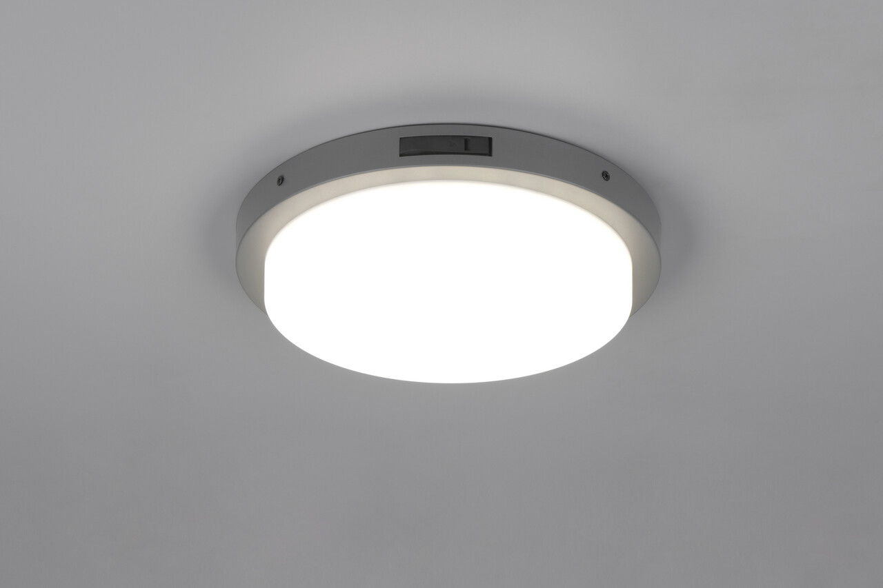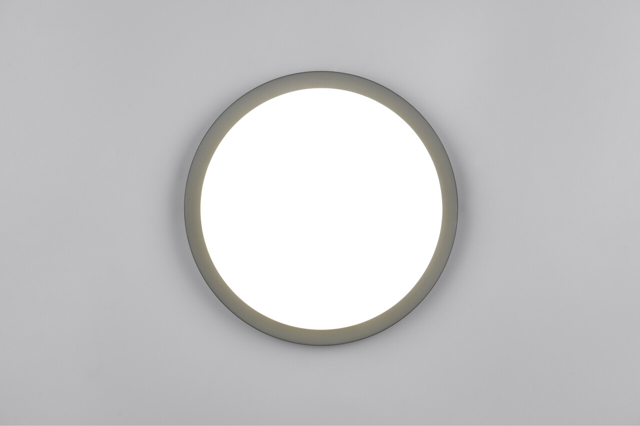 Plafoniera rotundă pentru exterior Bermejo TRIO, cu dimensiuni de 30x5.7 cm și putere de 14W, oferă o iluminare eficientă și versatilă. Aceasta dispune de senzor de mișcare integrat și permite reglarea temperaturii de culoare (alb cald, alb neutru, lumină naturală albă) printr-un intrerupător. Cu un ciclu de comutare de 15.000 ON/OFF și o durată de viață de 30.000 ore, plafoniera are un flux luminos de 1450 lumeni și un indice de redare a culorii de 80. Vino cu un set de numere de casă pentru personalizare. Design-ul elegant în metal antracit/alb completează perfect orice spațiu exterior.